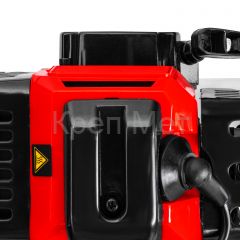 - Безопасность — производитель предусмотрел блокировку курка газа для предотвращения случайного запуска, защитный кожух препятствует вылету травы, веток, камней в сторону пользователя.