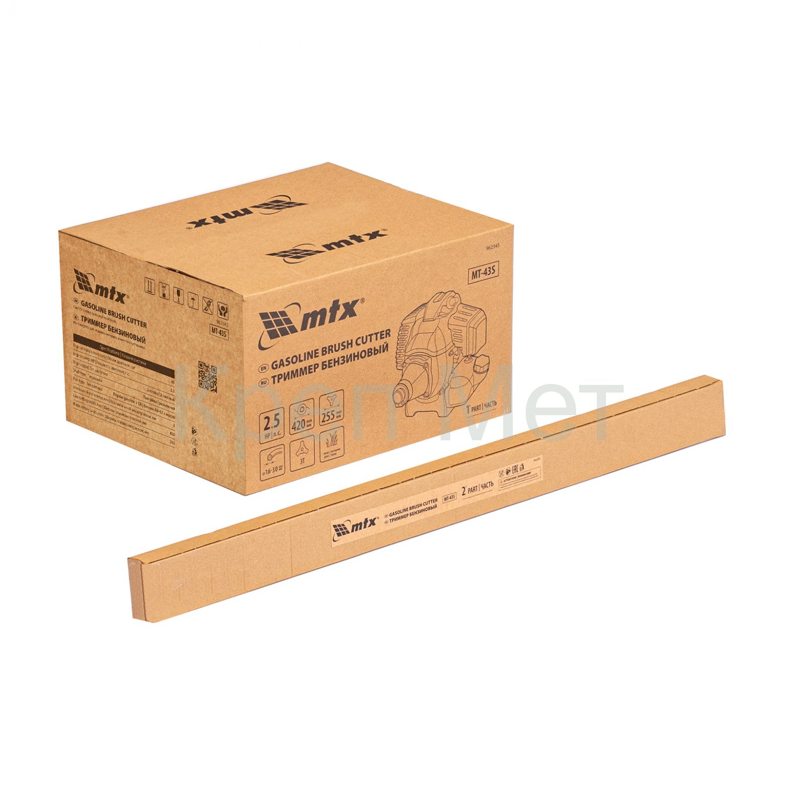 - Триммер бензиновый MT-43S, 43 см³, разъемная штанга, состоит из 2 частей MTX