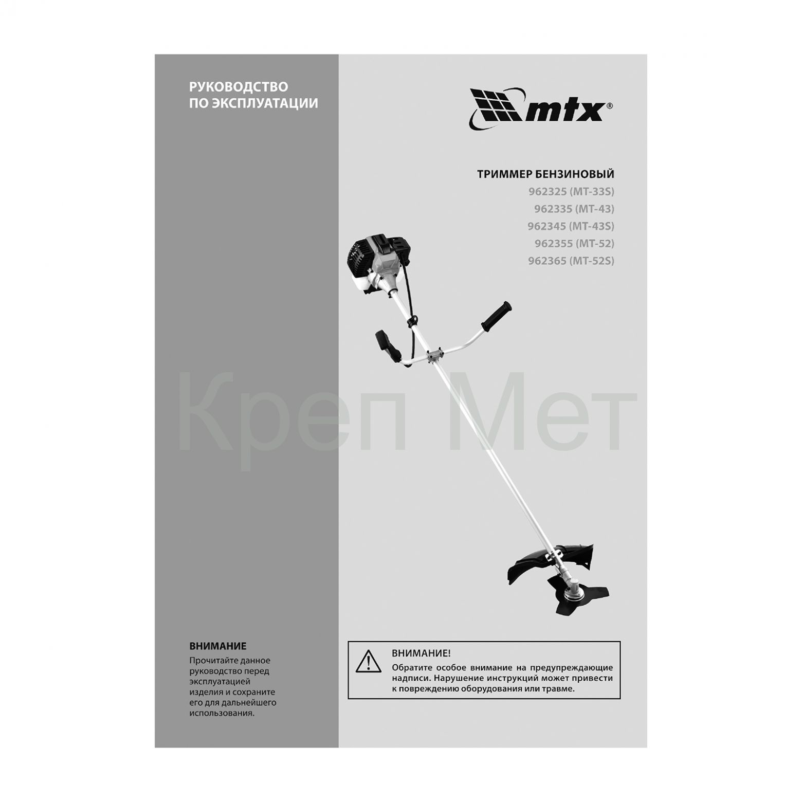 - Триммер бензиновый MT-52S, 52 см³, разъемная штанга, состоит из 2 частей MTX