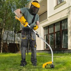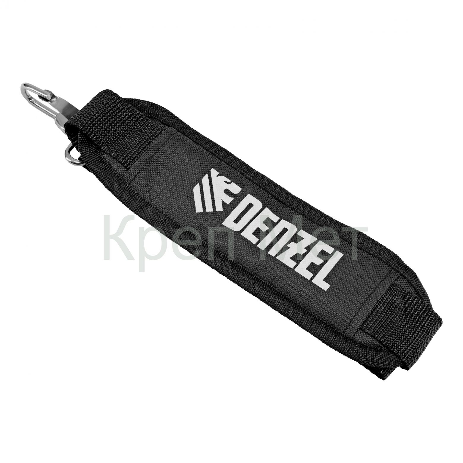 - Снижение нагрузки на спину — наплечный ремень равномерно распределяет вес садового электротриммера, что уменьшает усталость при длительной работе.