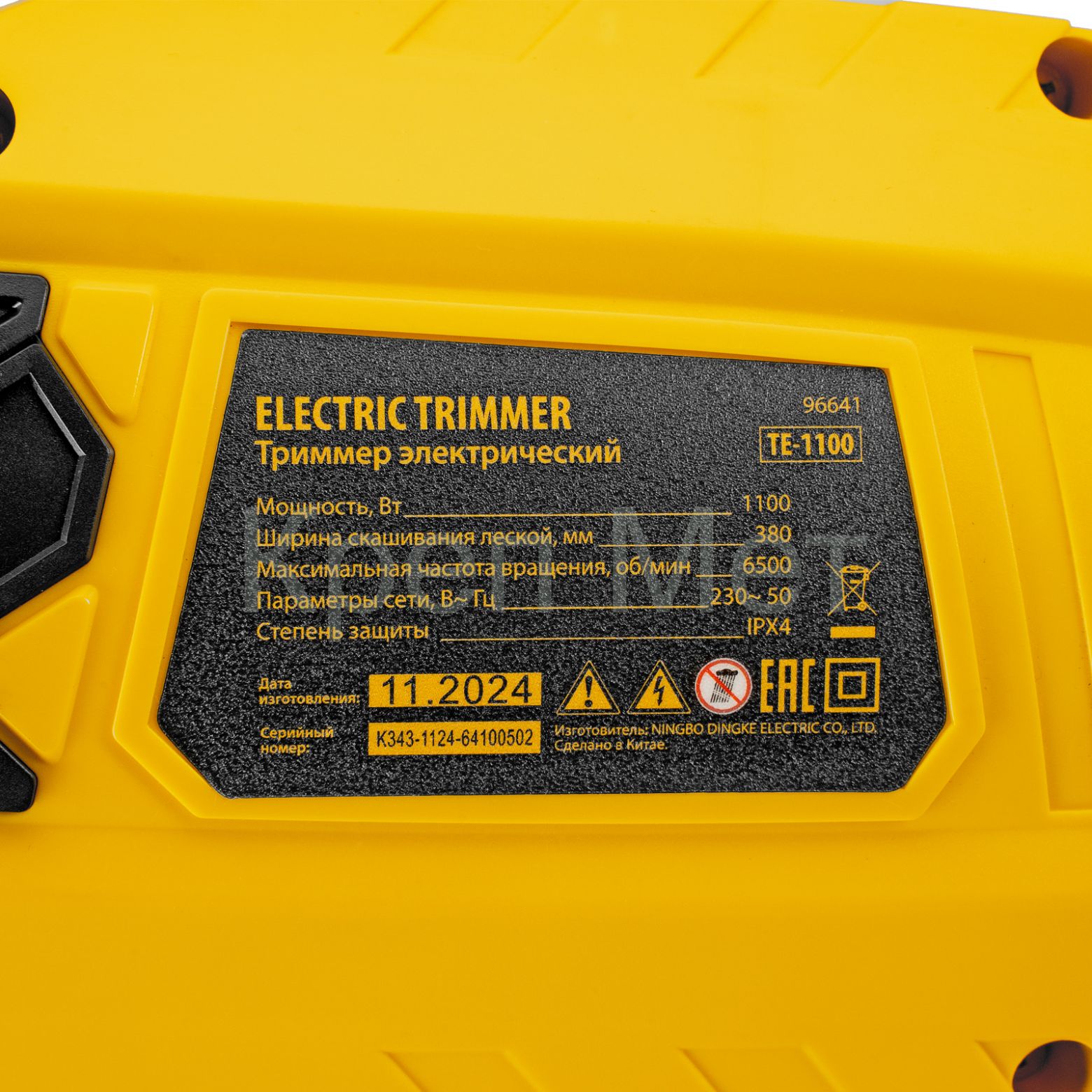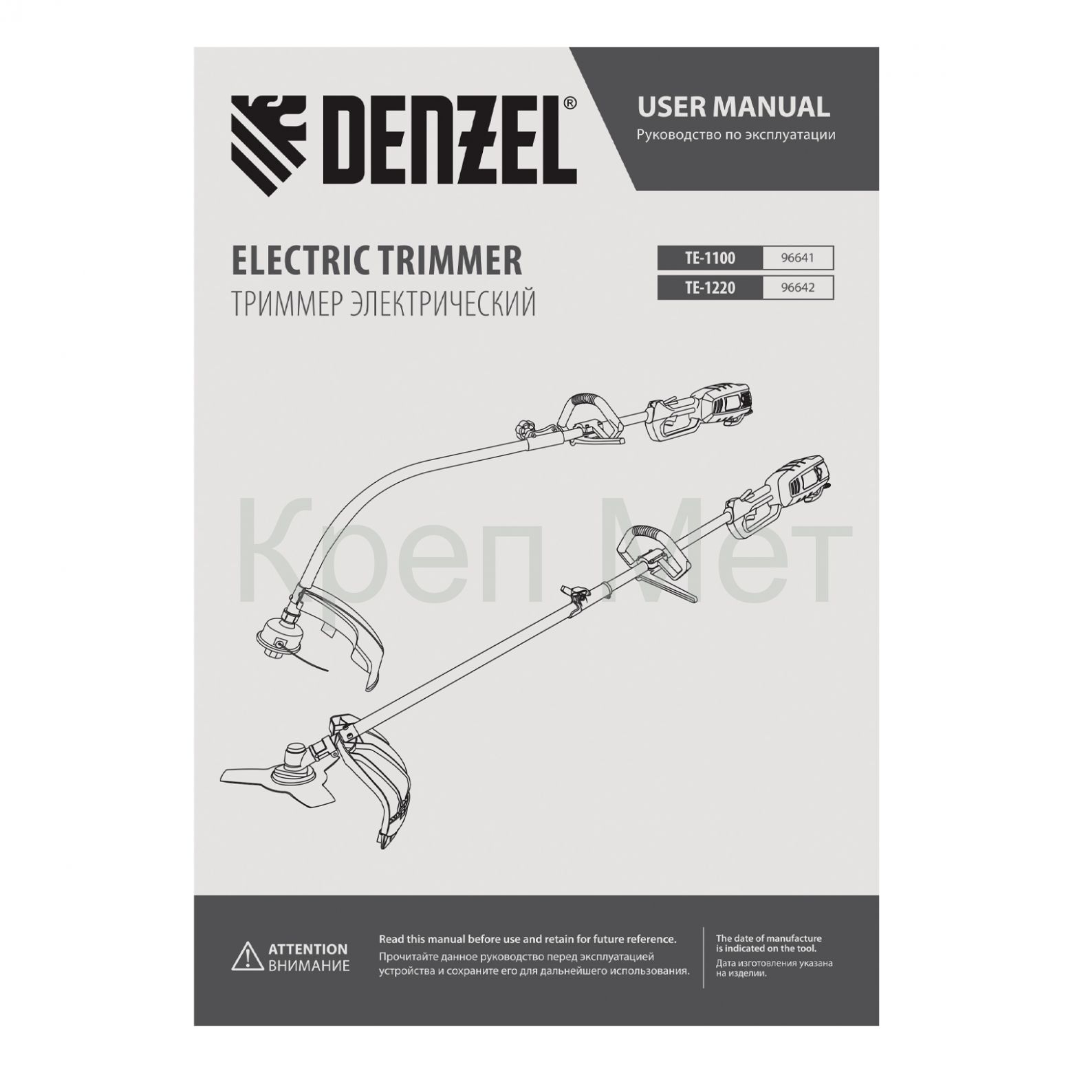 - Триммер электрический TE-1100, 1100 Вт, 380 мм, катушка, разборная штанга Denzel