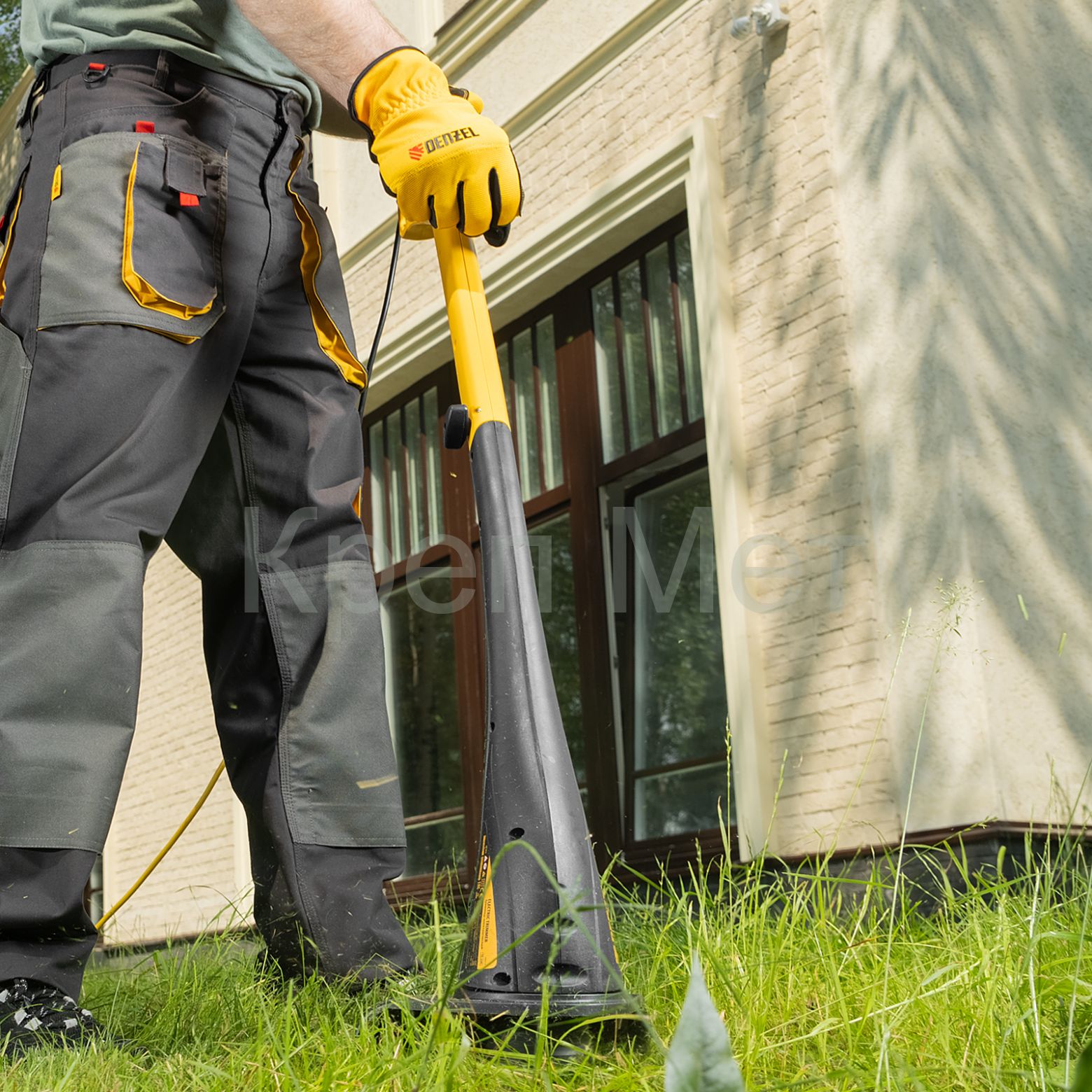 Электрический триммер Denzel TE-350 96619 мощностью 350 Вт с полуавтоматической катушкой предназначен для скашивания газонной травы с шириной прохода 260 мм. Также с его помощью можно обработать места, недоступные для колесной косилки, — вдоль стен и заборов, в ямках и на возвышенностях, вокруг деревьев и клумб. Электромотор работает тихо, не выделяет вредных выхлопов и не требует постоянного технического обслуживания, что делает работу с триммером максимально комфортной. Двигатель вращает оснастку со скоростью 12500 об/мин, что позволяет сократить время работы.