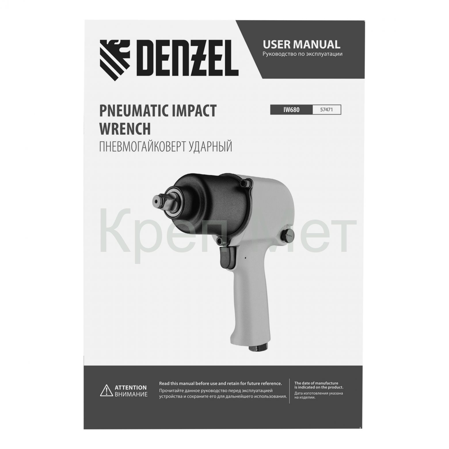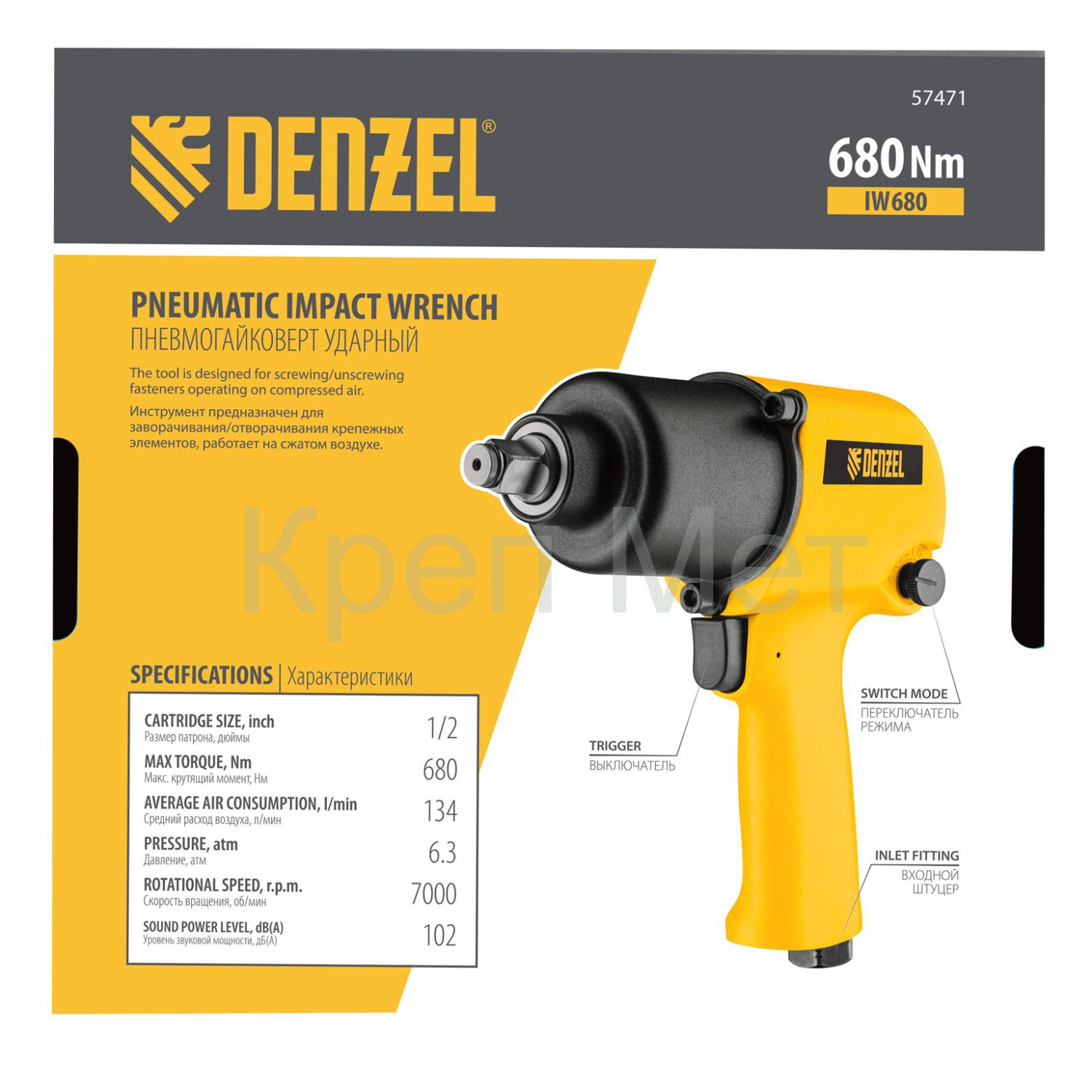 - Ударный пневмогайковерт IW680, 1/2", 7000 об/мин, 680 Нм Denzel