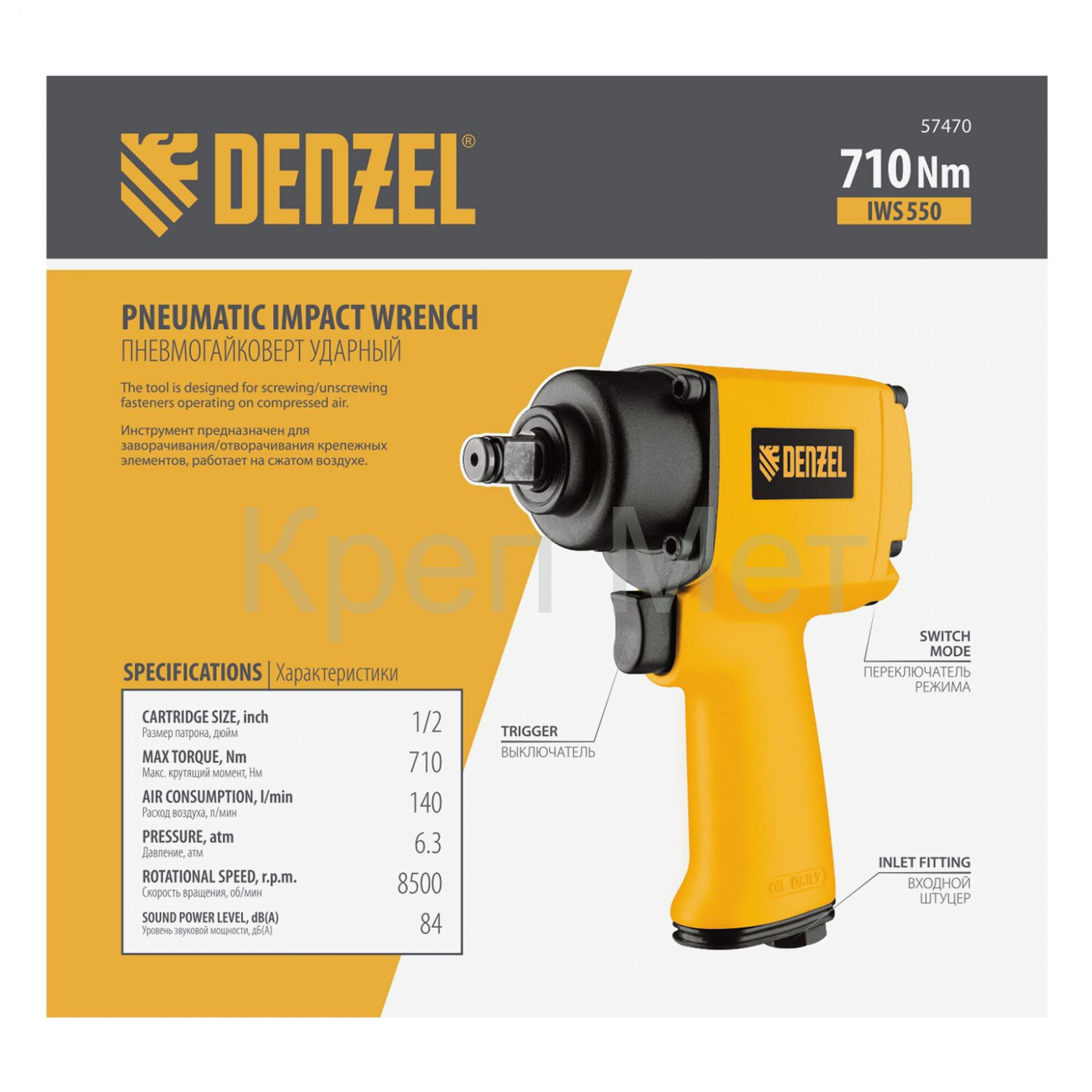 - Ударный пневмогайковерт IWS550 Compact, 1/2", 8500 об/мин, 710 Нм Denzel