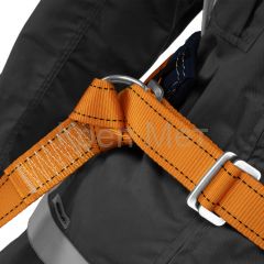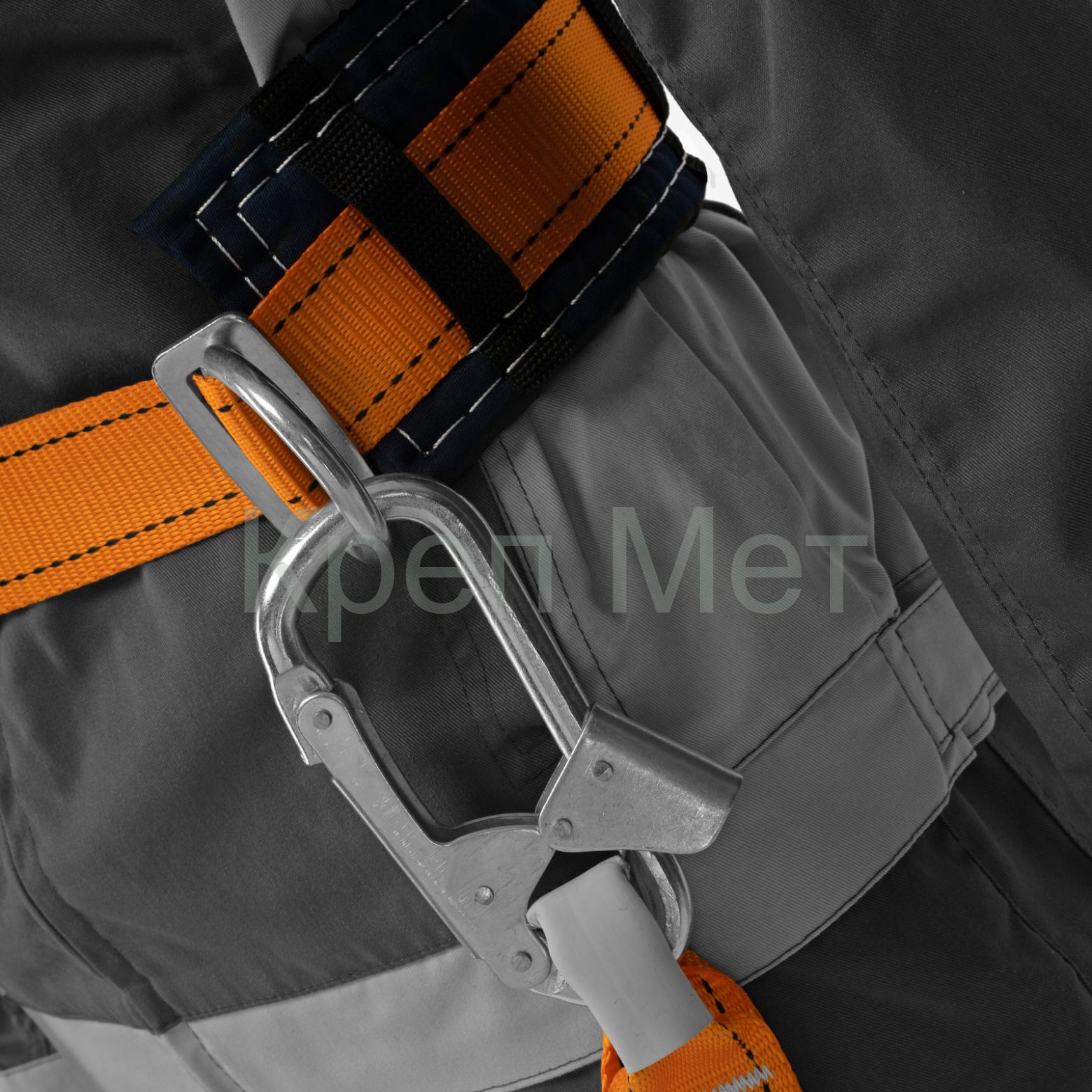 • Надежная страховка — привязь снабжена большим карабином и двумя прочными металлическими D-образными кольцами.