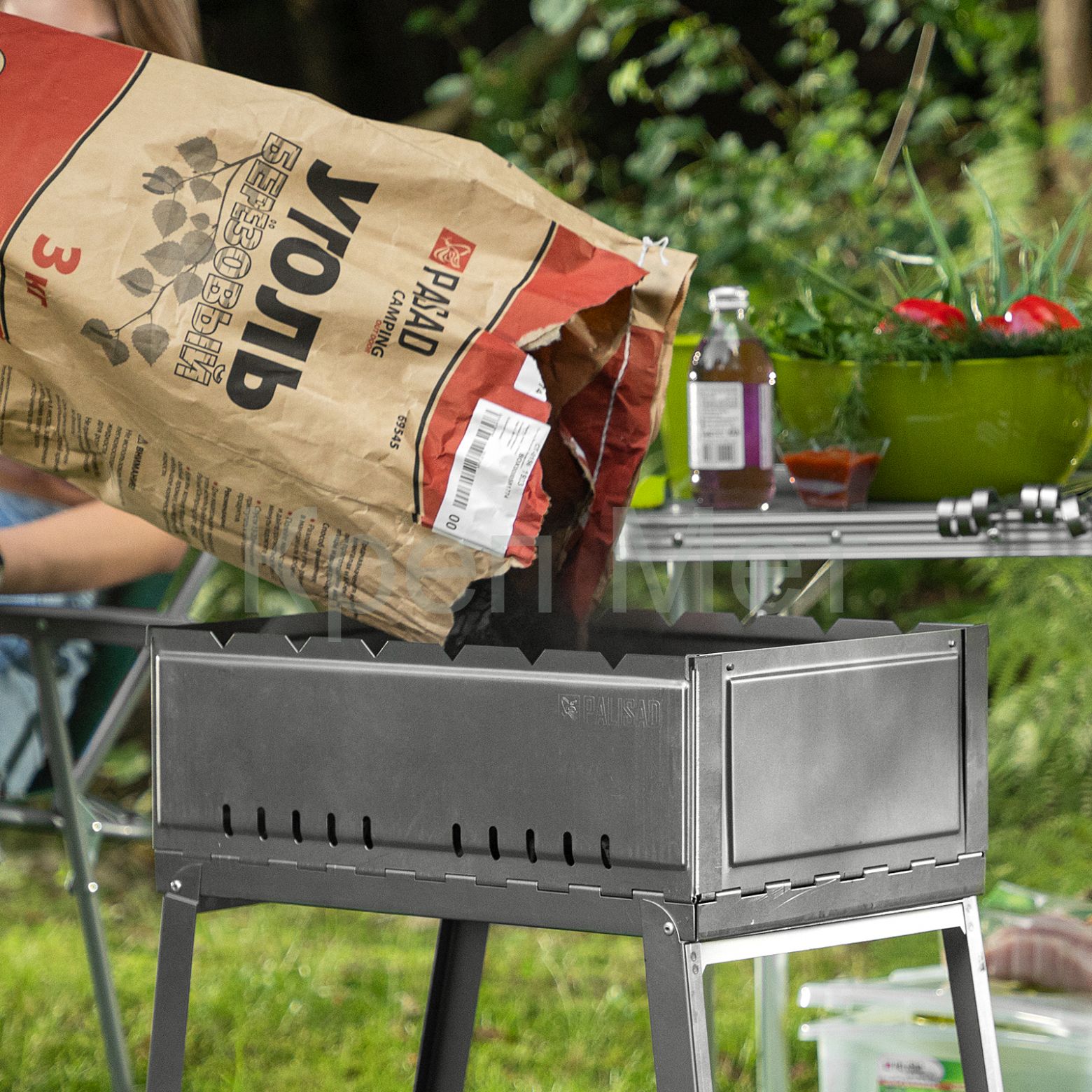Березовый уголь Palisad Camping 69545, объем упаковки 3 кг, используется в качестве топлива для приготовления пищи на открытом воздухе: с помощью мангала, гриля или барбекю. Пакета хватит для небольшой компании на даче или пикнике.