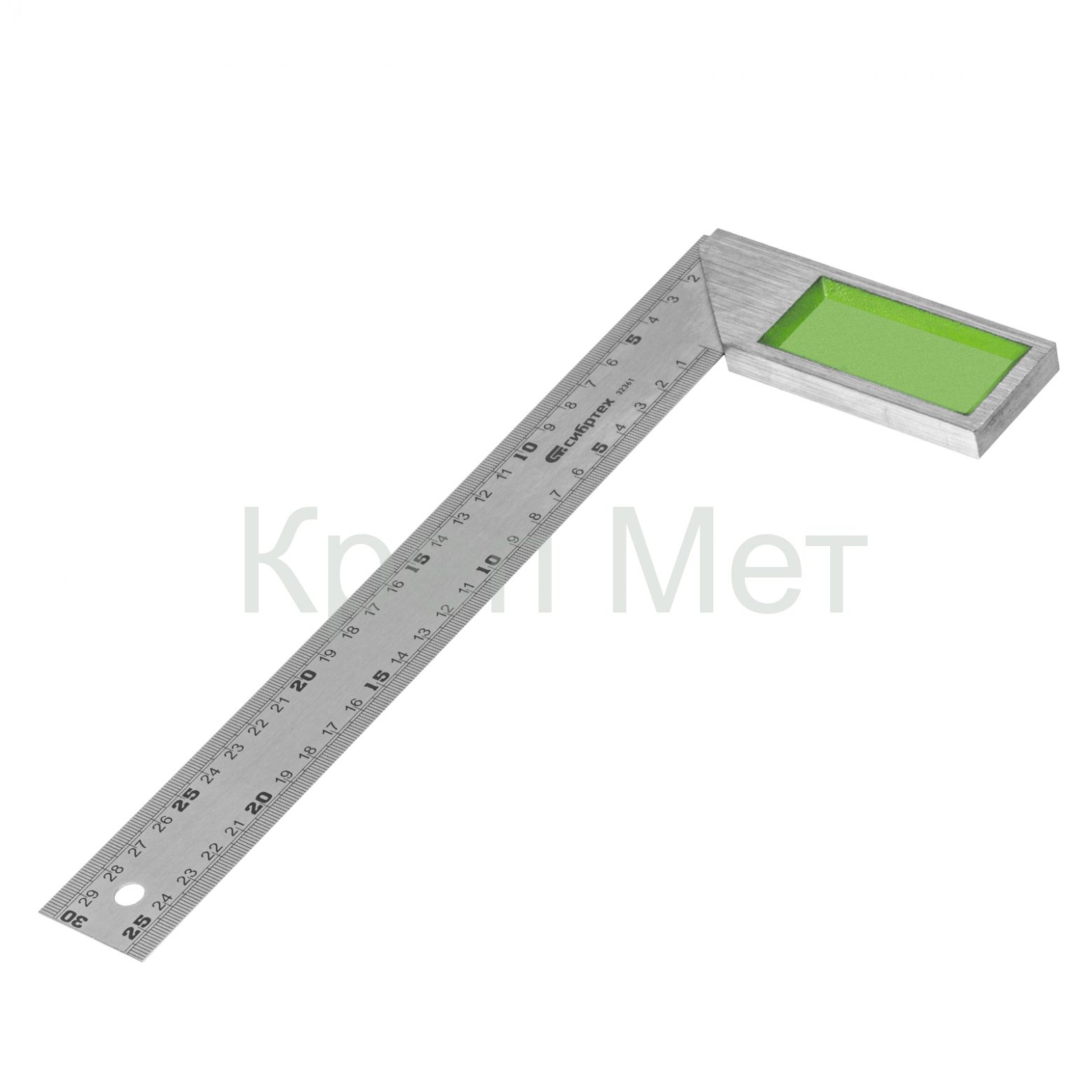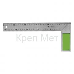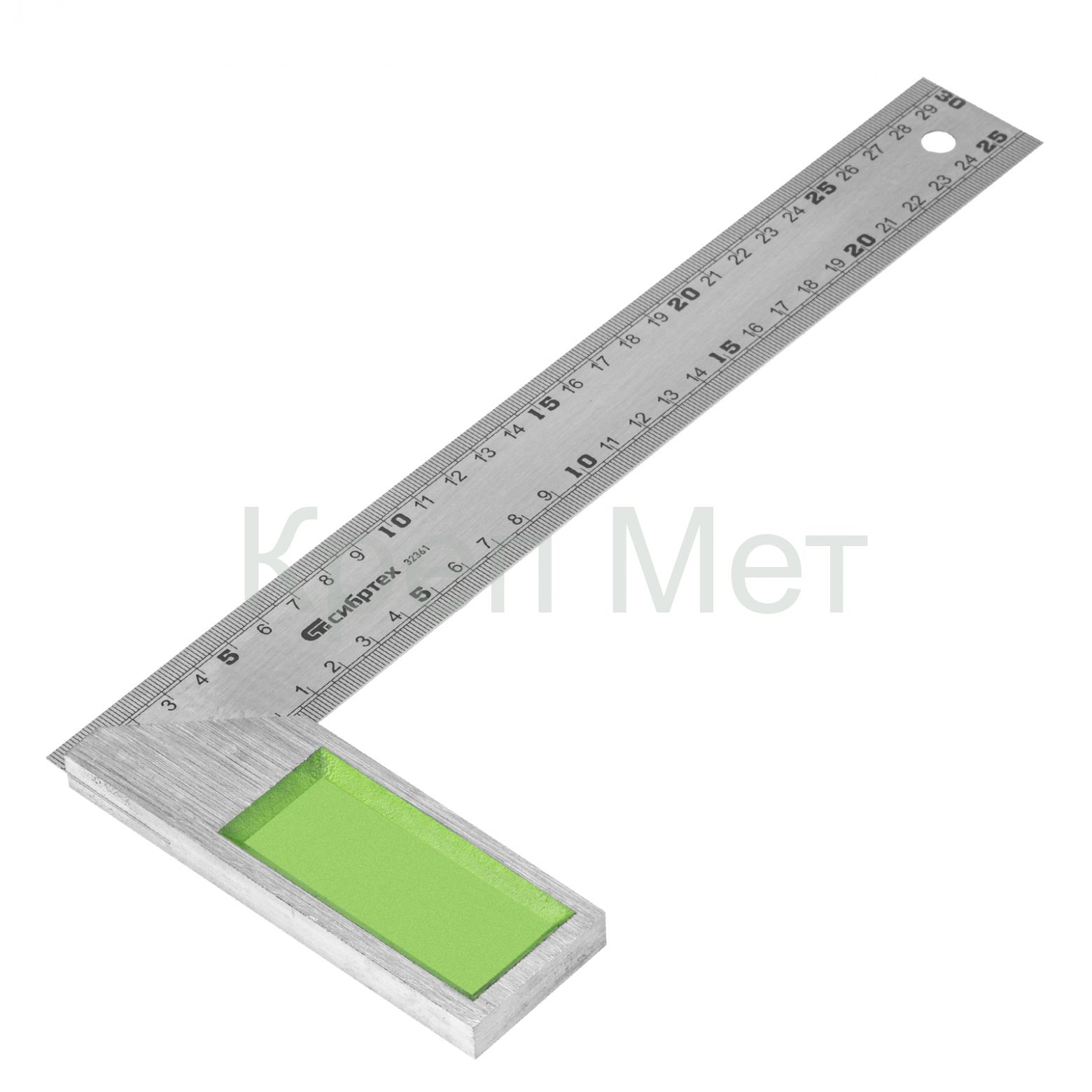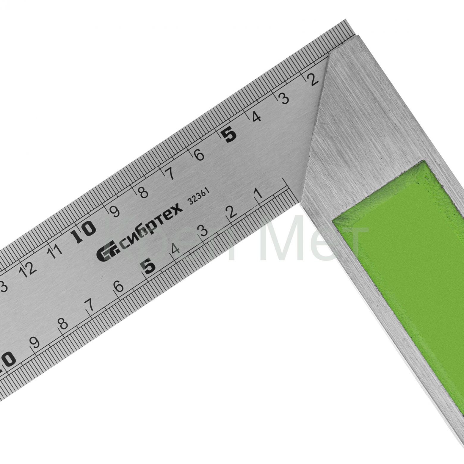 Металлический угольник Сибртех 32361 длиной 300 мм предназначен для проверки углов 45° и 90° во время сборки и обработки изделий. Используется также для разметки поверхностей во время строительных и столярных работ.