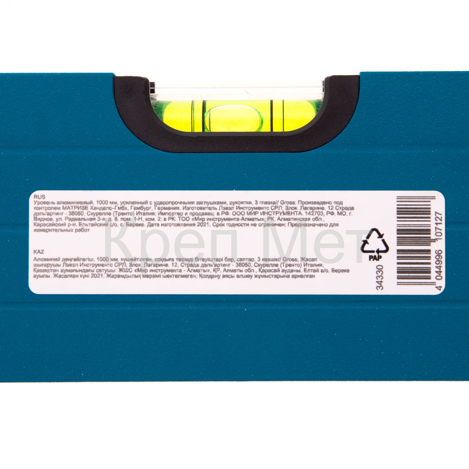 - Уровень алюминиевый, 1000 мм, усиленный с ударопрочными заглушками, рукоятки, 3 глазка Gross