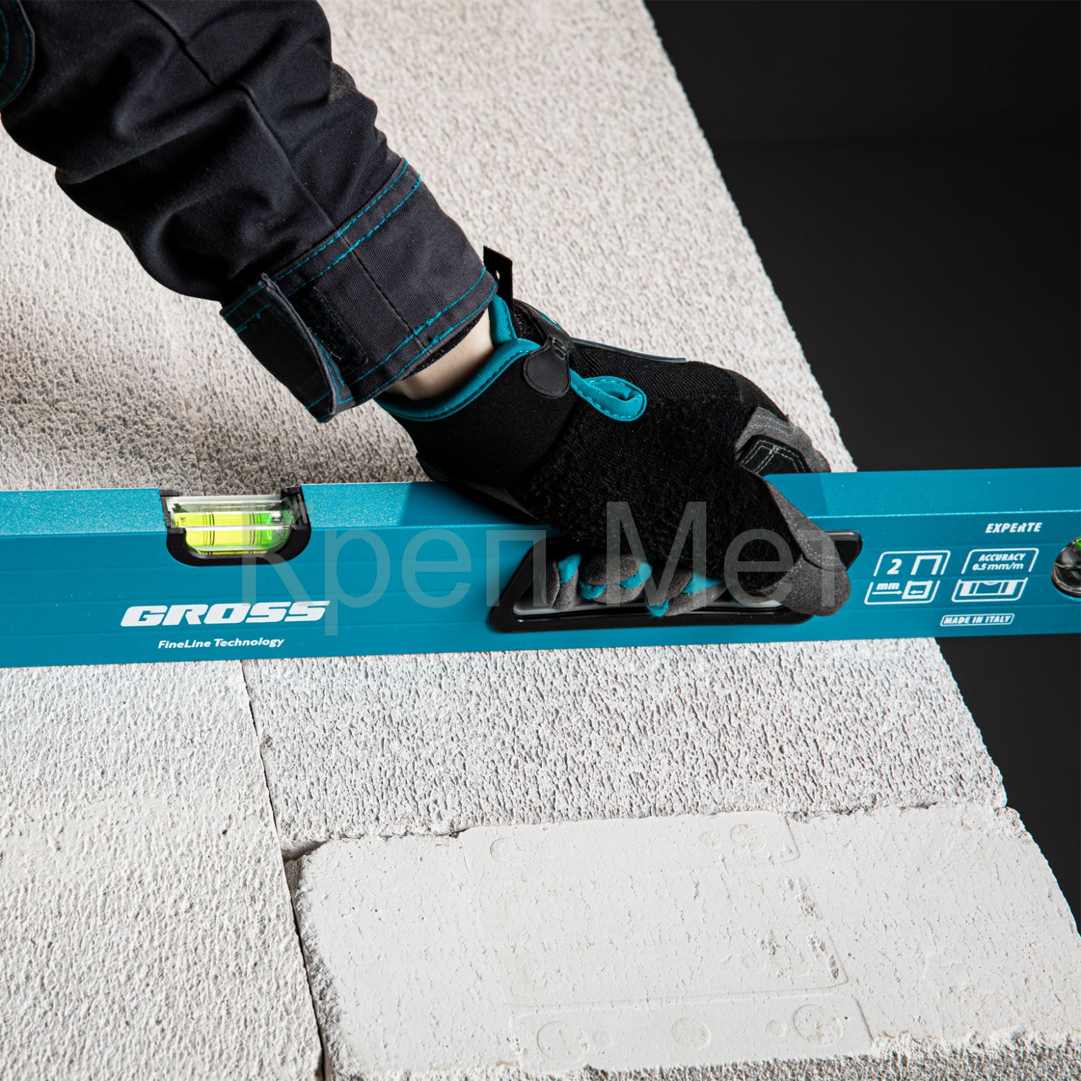 - Уровень алюминиевый, 1500 мм, усиленный с ударопрочными заглушками, рукоятки, 3 глазка Gross