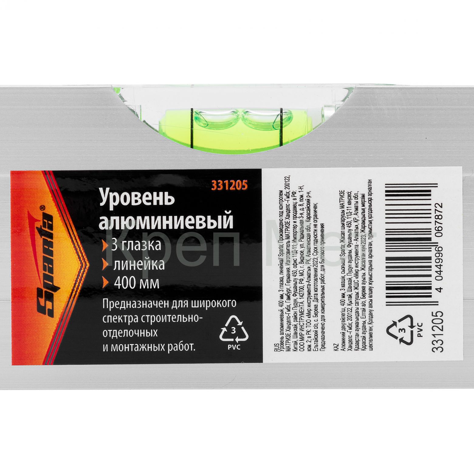 Уровень алюминиевый, 400 мм, 3 глазка, линейка Sparta