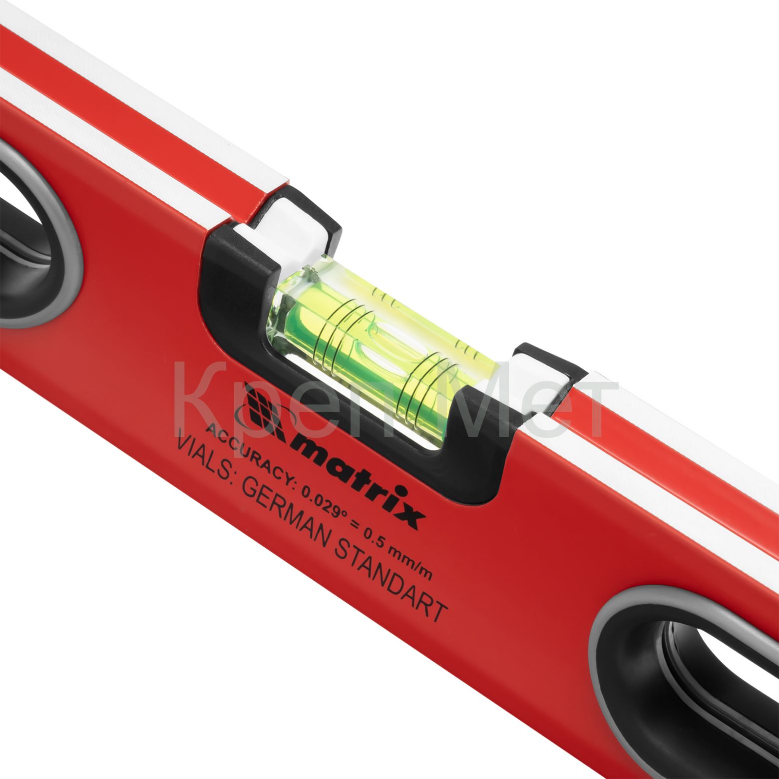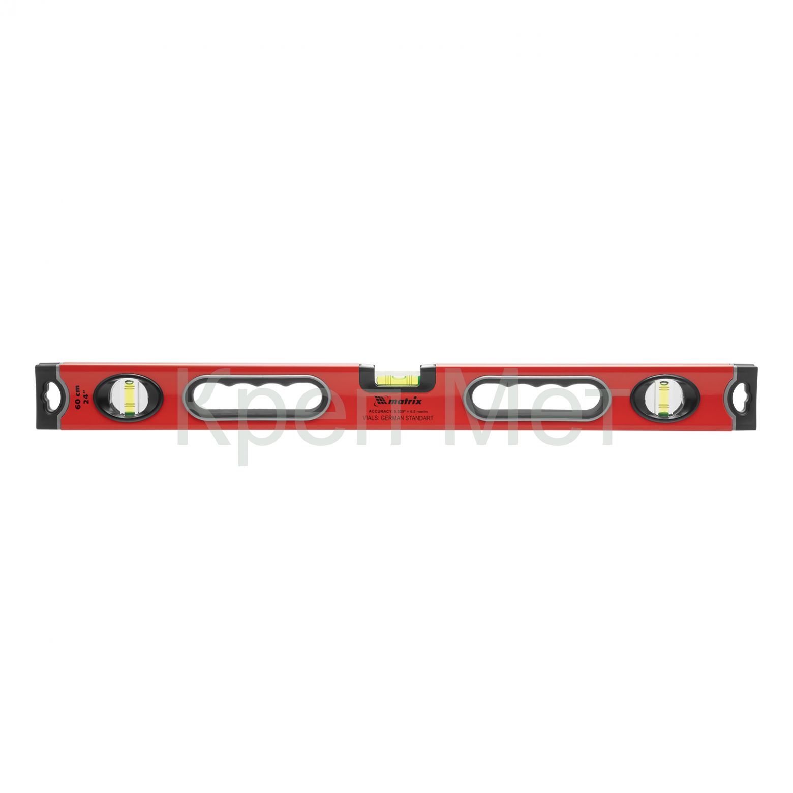 - Уровень алюминиевый, 600 мм, 3 глазка, ударопрочные заглушки, двухкомпонентные ручки Matrix ProFI