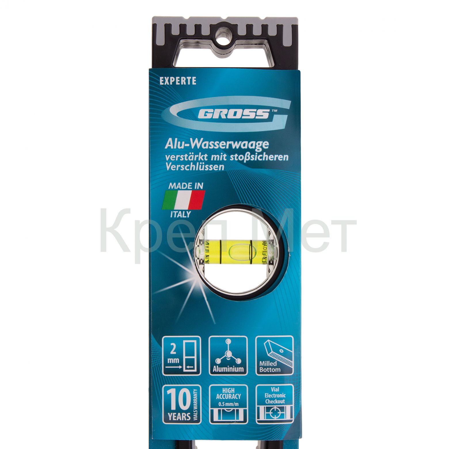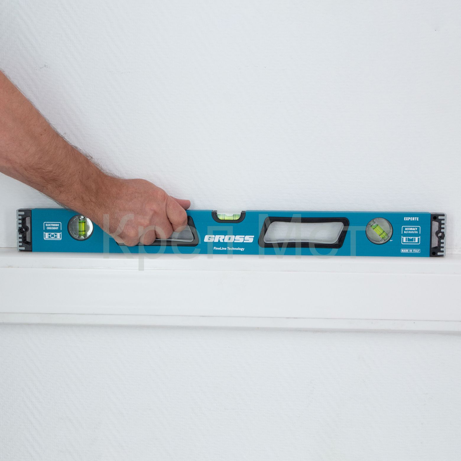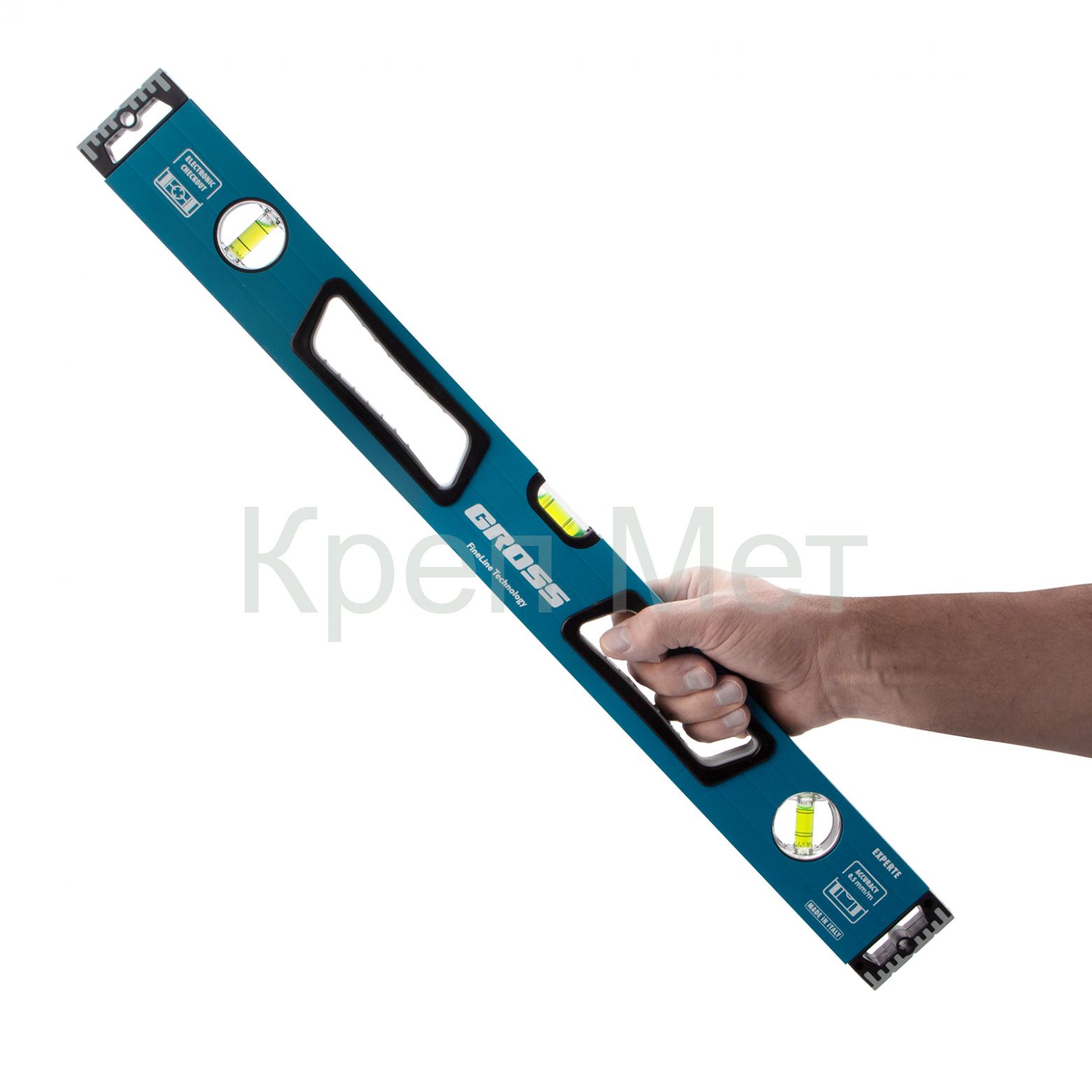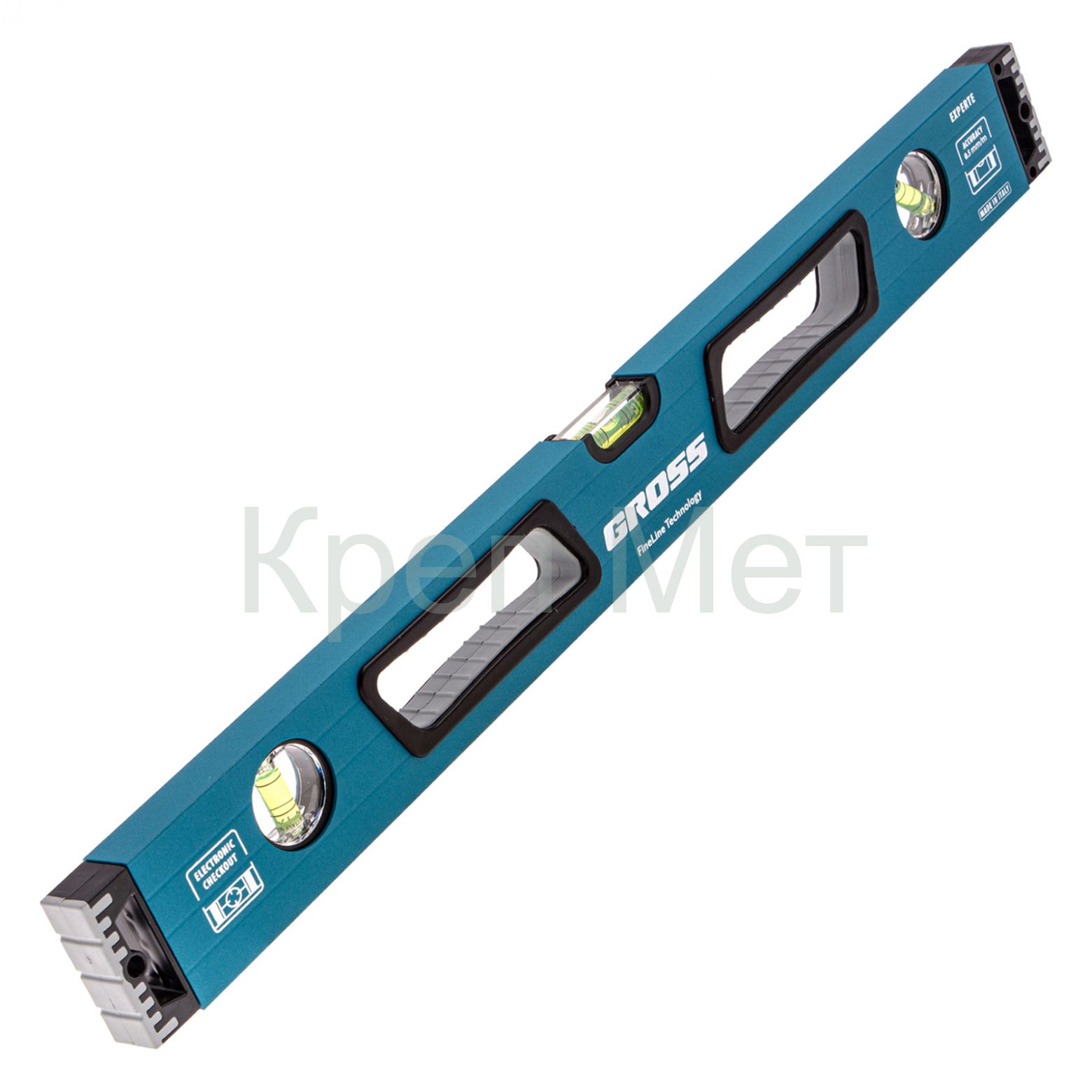- Уровень алюминиевый, 600 мм, усиленный с ударопрочными заглушками, рукоятки, 3 глазка Gross
