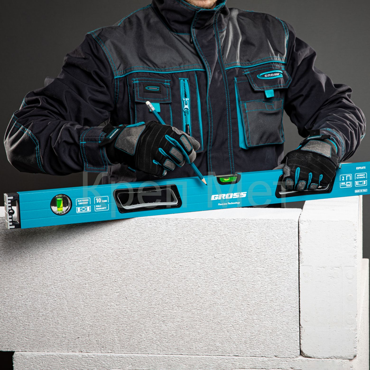 Усиленный алюминиевый уровень Gross 34328 длиной 800 мм, с ударопрочными заглушками, рукоятками и 3 глазками, — универсальный инструмент для решения профессиональных задач на строительной площадке. Благодаря ему можно выровнять поверхности относительно горизонтали и вертикали или проверить соответствие углу 45 градусов.