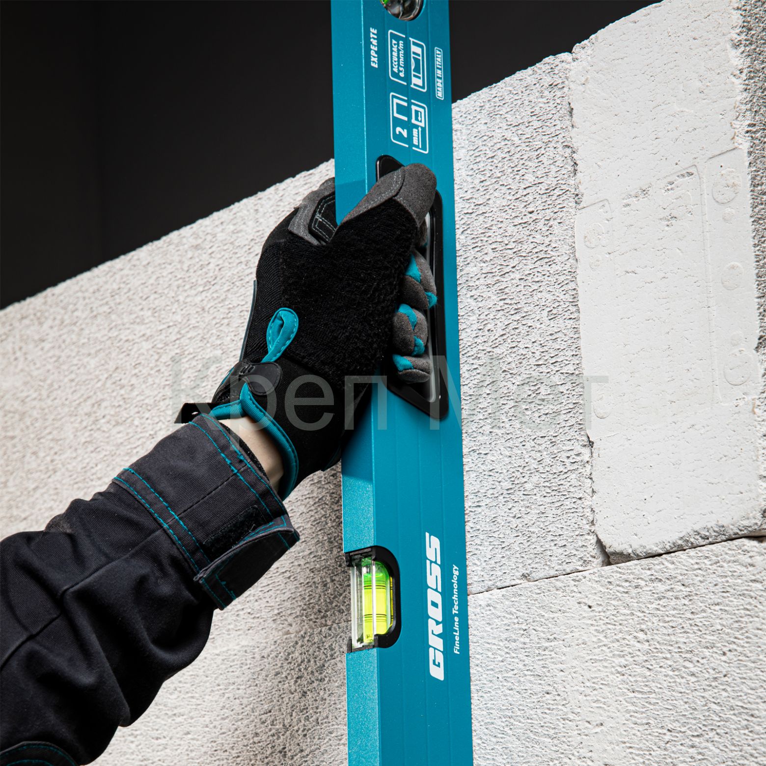 - Уровень алюминиевый, 800 мм, усиленный с ударопрочными заглушками, рукоятки, 3 глазка Gross