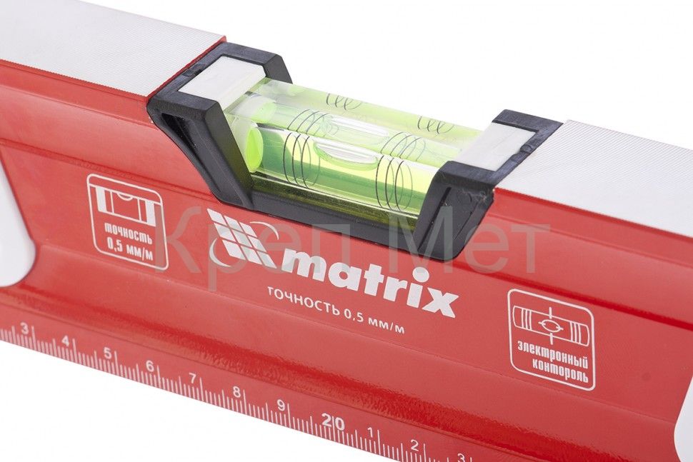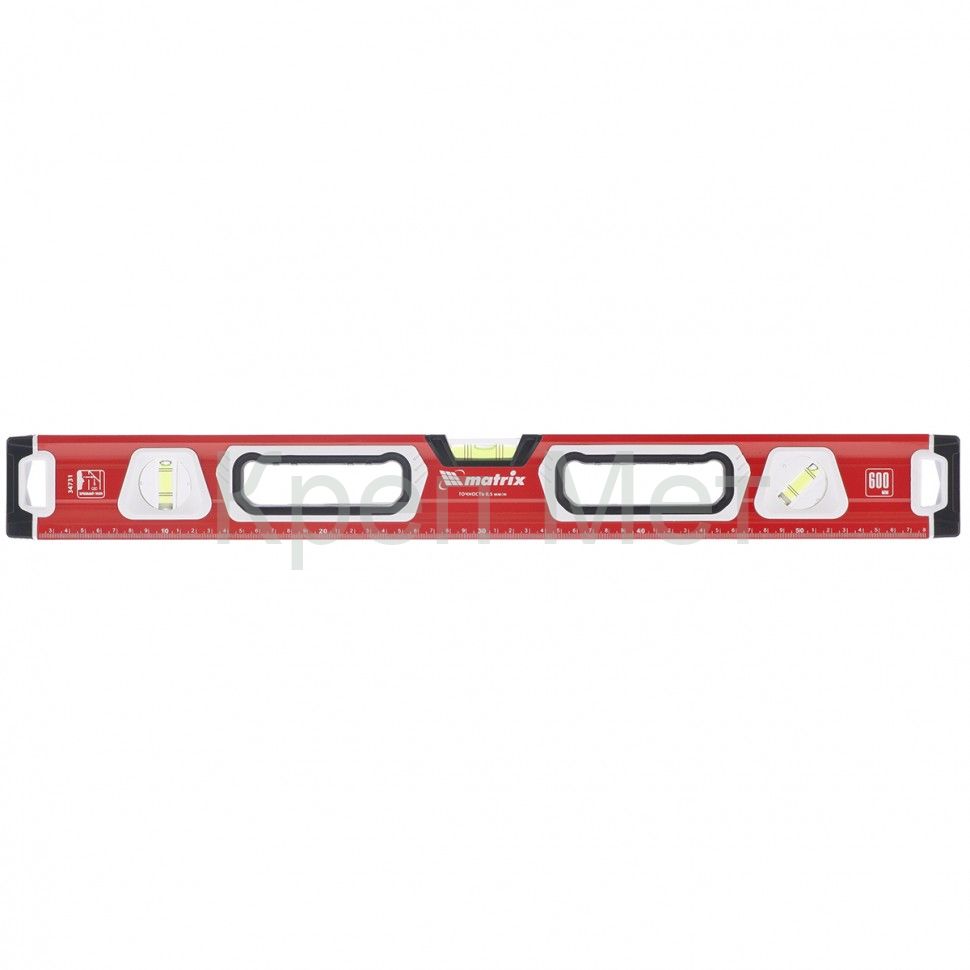 - Уровень алюминиевый, магнит, фрезерованный, 3 глазка (1 зеркальный) двухкомпонентные рукоятки, 1200 мм Matrix
