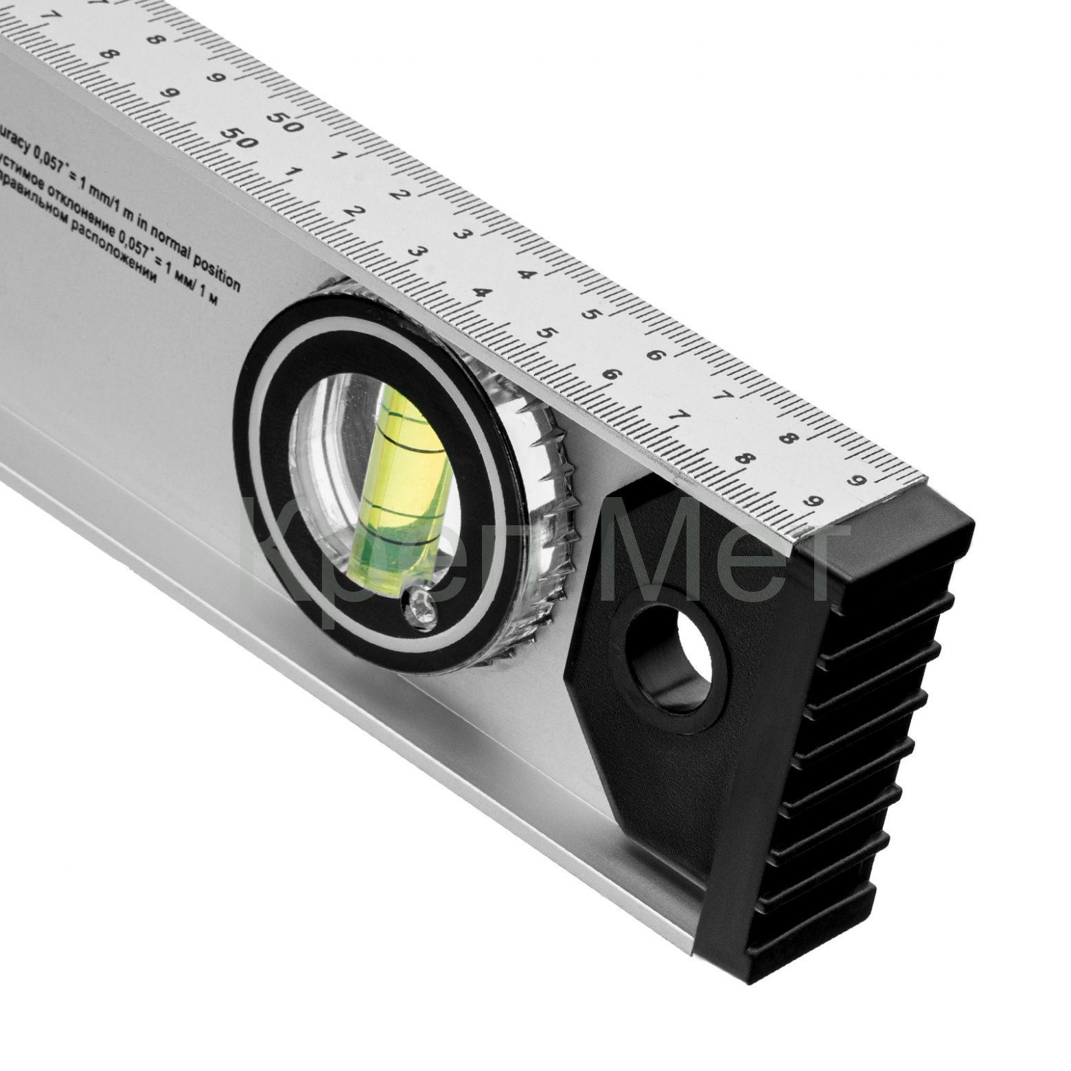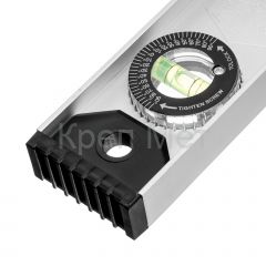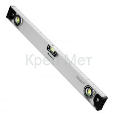 Алюминиевый уровень Matrix «Рельс» 34023 длиной 600 мм имеет 3 глазка: 2 для проверки отклонений от заданной вертикали и горизонтали и 1 поворотный для проверки наклонных поверхностей.