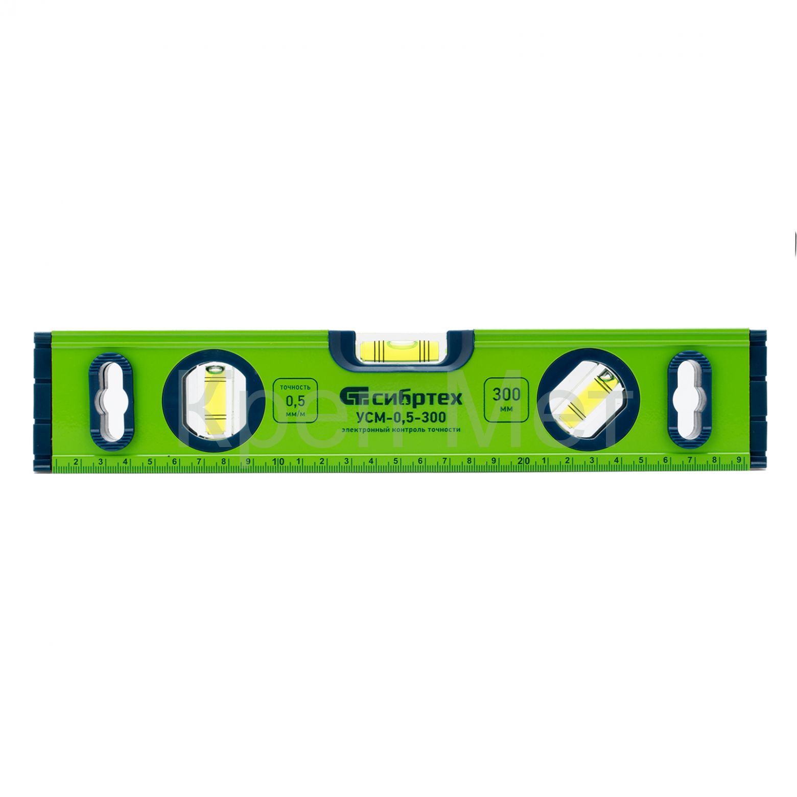 Алюминиевый фрезерованный уровень Сибртех УСМ-0,5-300 34111 длиной 300 мм, магнитный, с 3 глазками, поможет найти отклонения от горизонтальной и вертикальной плоскостей и угла 45 градусов. Инструмент незаменим при осуществлении строительных и ремонтных работ, т.к. обеспечивает высокую точность работы.,Для определения отклонения вертикали 90 градусов необходимо использовать пузырьковую ампулу только в верхнем положении уровня. Только базовая поверхность является рабочей (противоположная ампуле 180 градусов).