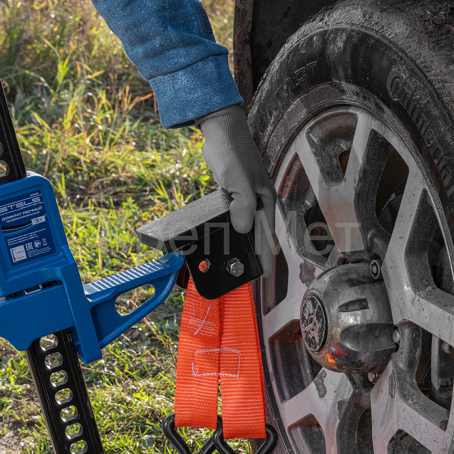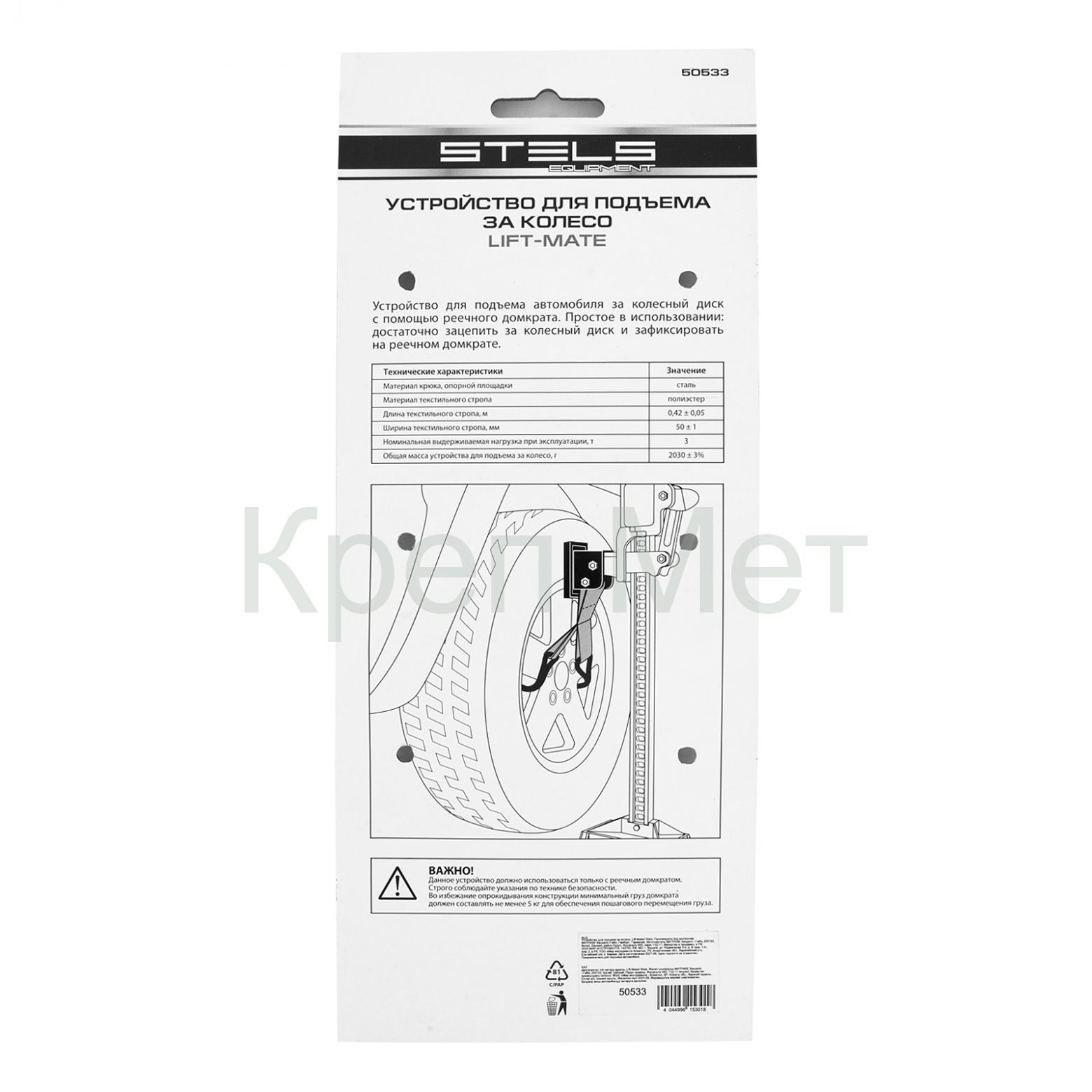 Устройство для подъема за колесо Stels Lift-Mate 50533 используется с реечным домкратом и позволяет поднять застрявший в грязи автомобиль, зацепив крюки за колесный диск. Подходит для большинства автомашин, будет полезно в поездках на дальние расстояния.