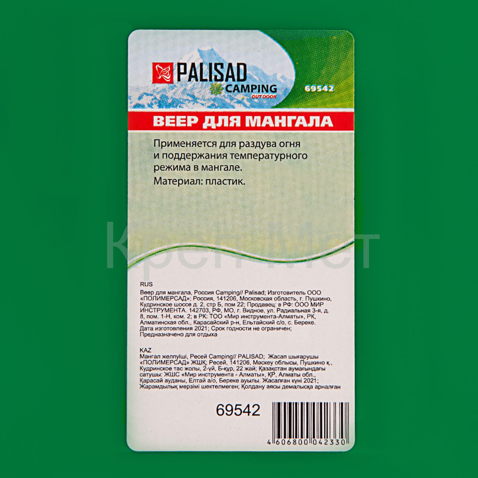 Веер для мангала Palisad Camping 69542 пригодится на пикнике, в походе, на даче. Он служит для раздувания огня в мангале или костре, увеличивая приток кислорода к топливу, что обеспечивает качественное горение.