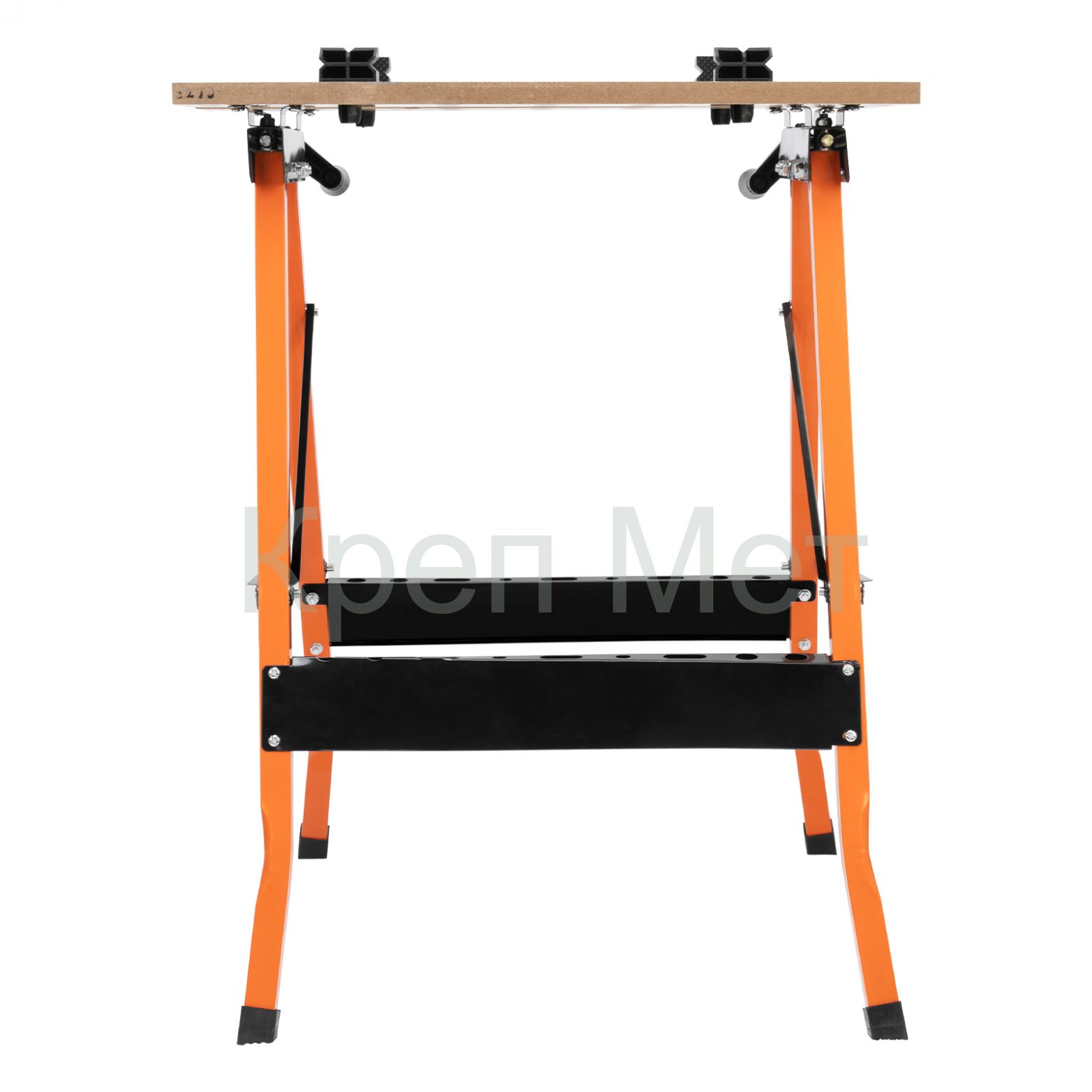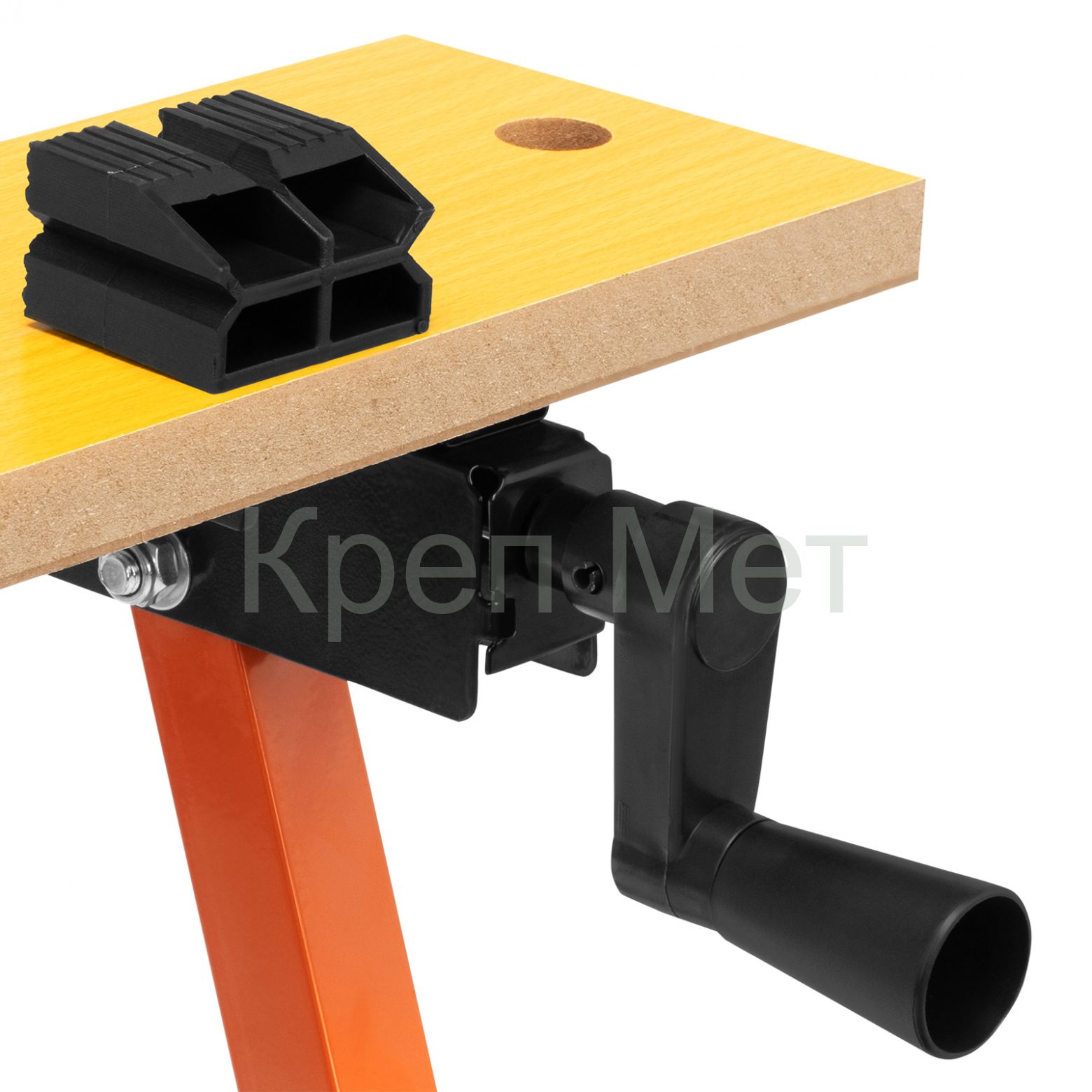 - Надежная конструкция — верстак-тиски выдерживает нагрузку до 100 кг.