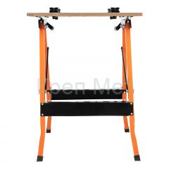 - Удобная эксплуатация — верстак снабжен 4 съемными упорами, которые устанавливаются в различных позициях, а на столешнице имеется разметка с линейкой и транспортиром.