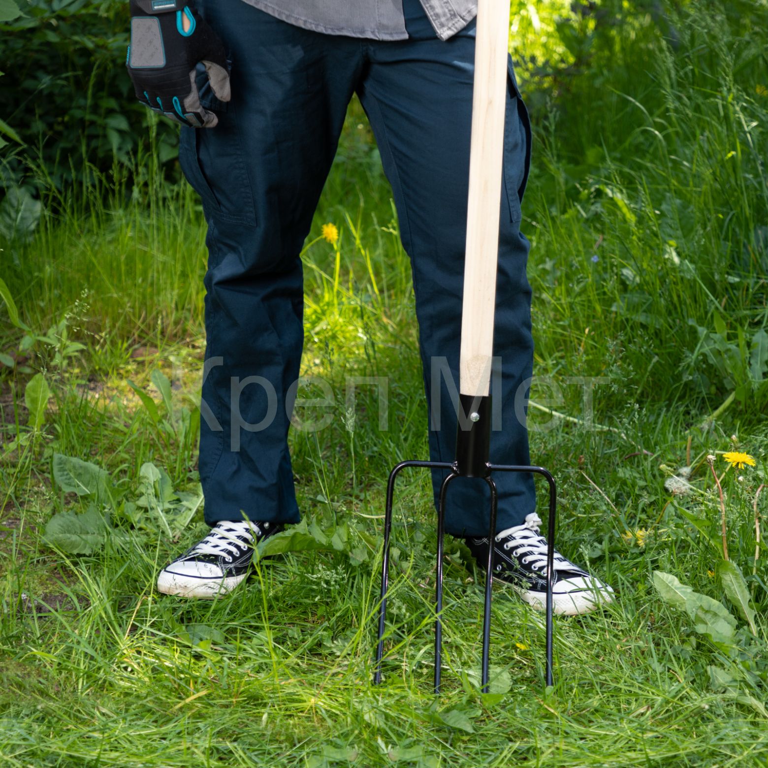 - Надежность — вилы имеют цельновырубную тулейку диаметром 40 мм, минимизирующую риск излома черенка.
