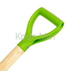 - Долговечность — антикоррозийное покрытие предотвращает разрушение, деревянный черенок покрыт лаком для защиты от влаги.