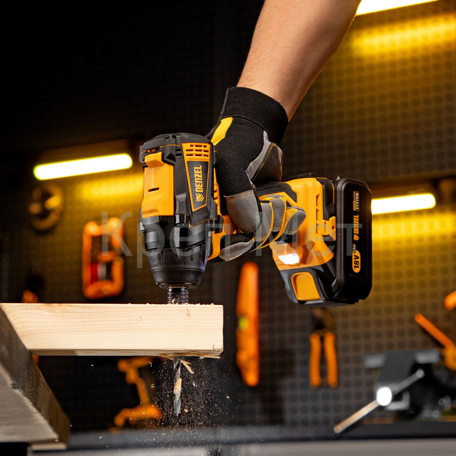 - Универсальность — к инструменту подойдут любые 18 В аккумуляторы Denzel battery system