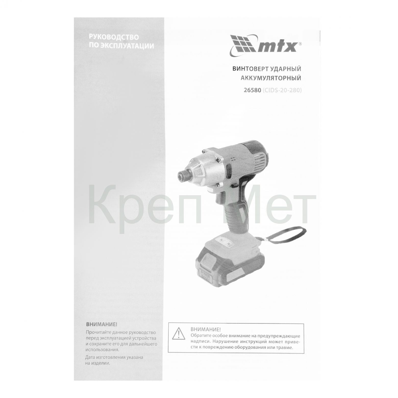 - Винтоверт ударный аккумуляторный CIDS-20-280, Li-Ion, 20 В MTX