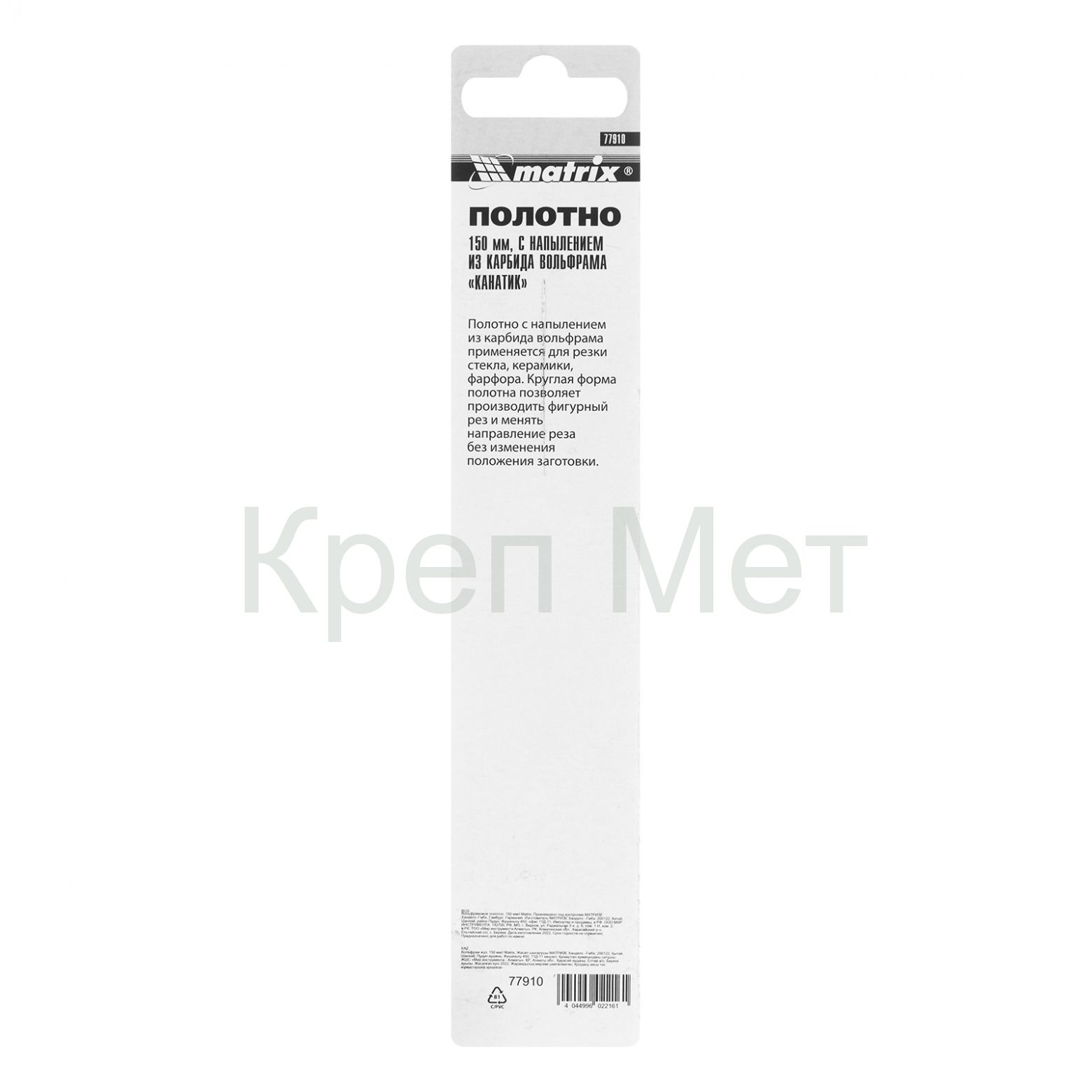 Вольфрамовое полотно Matrix 77910 длиной 150 мм используется в качестве сменного элемента для ручных ножовок соответствующего размера. Оно пригодится для распила стекла, керамики и фарфора. Полотно будет полезно при осуществлении ремонта в квартире или загородном доме.