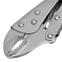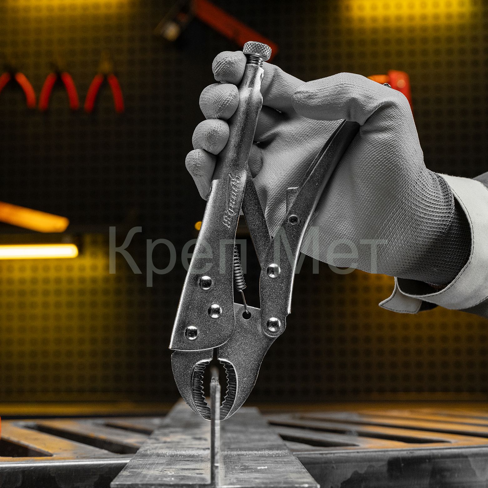 Ручной зажим Sparta 184305 длиной 250 мм, с полукруглым захватом, удерживает заготовки и детали в определенном положении, что облегчает их обработку или сварку. Инструмент используется в строительстве, во время проведения сантехнических работ и ремонта автомобилей, а также будет полезен дома или на даче.