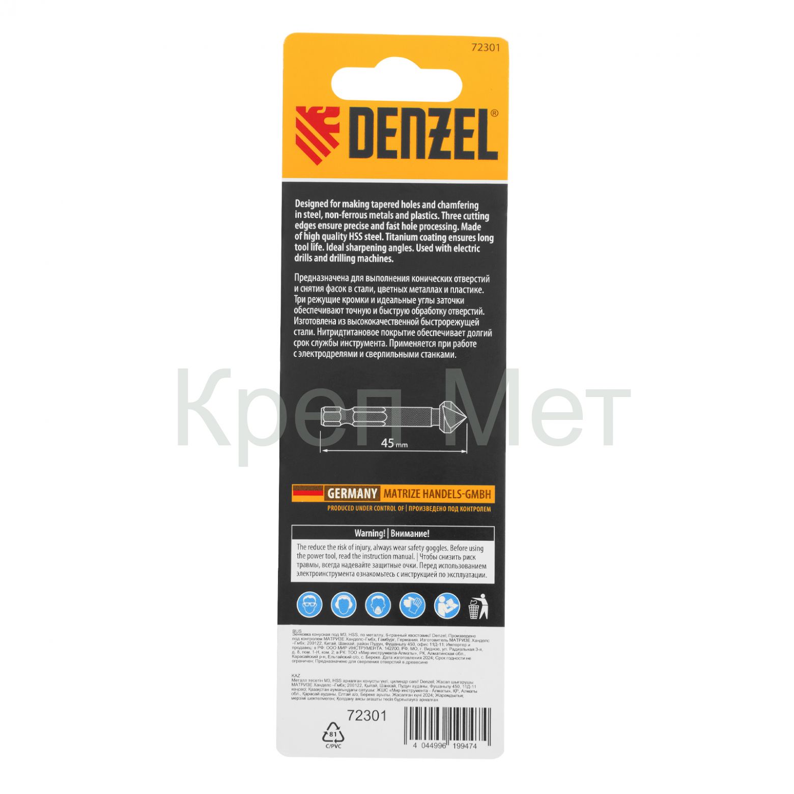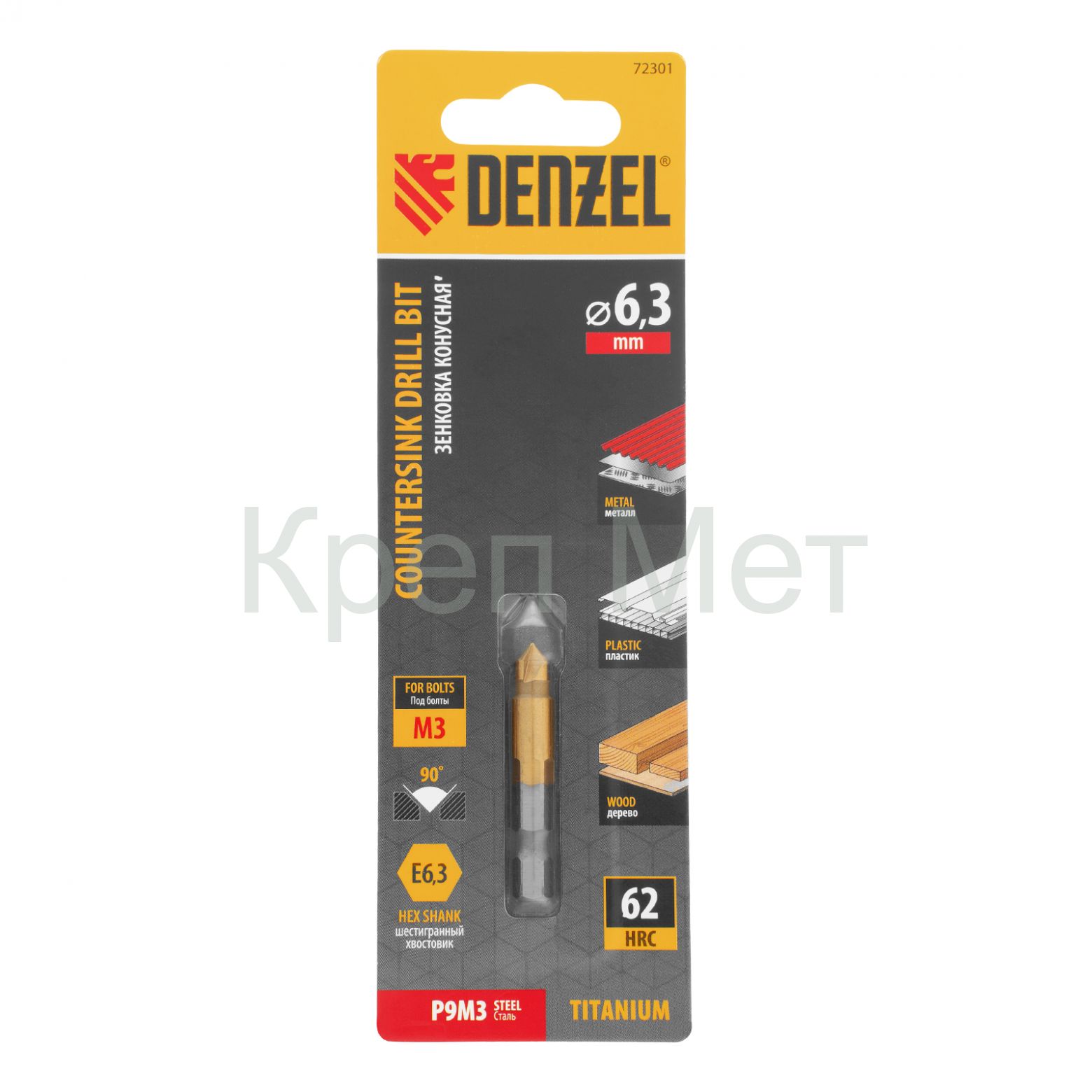 - Зенковка конусная под М3, HSS, по металлу, 6-гранный хвостовик Denzel