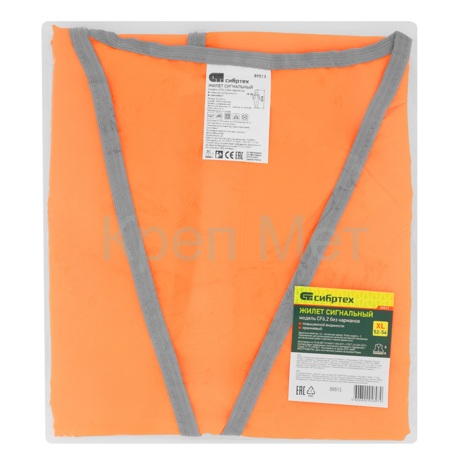- Жилет сигнальный, оранжевый, размер XL Сибртех