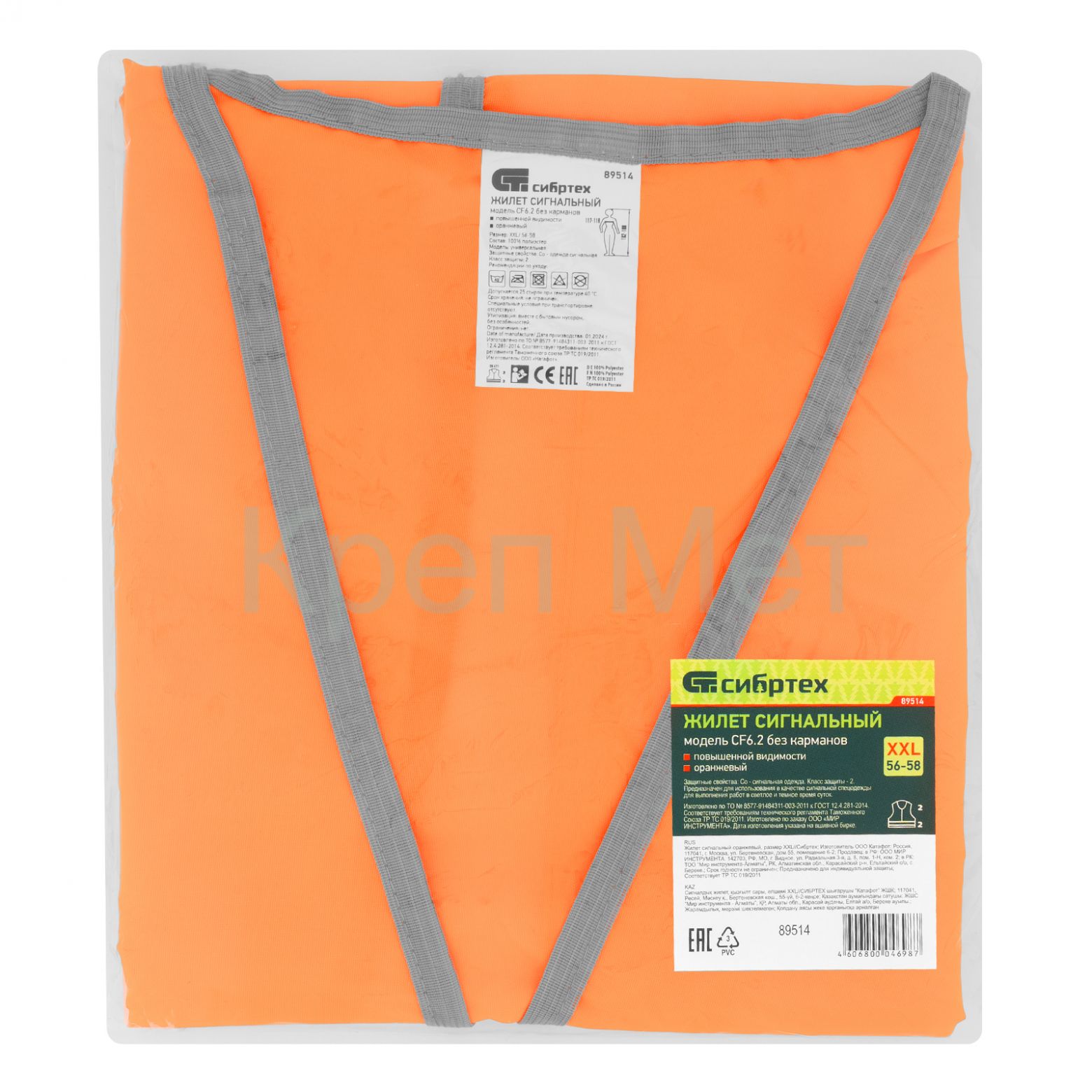 - Жилет сигнальный, оранжевый, размер XXL Сибртех
