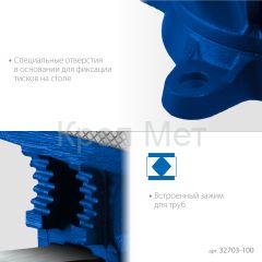 - Увеличенная наковальня на корпусе тисков для выполнения слесарных работ