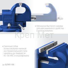 - ЗУБР 150 мм, быстрозажимные слесарные тиски, Профессионал (32707-150 )