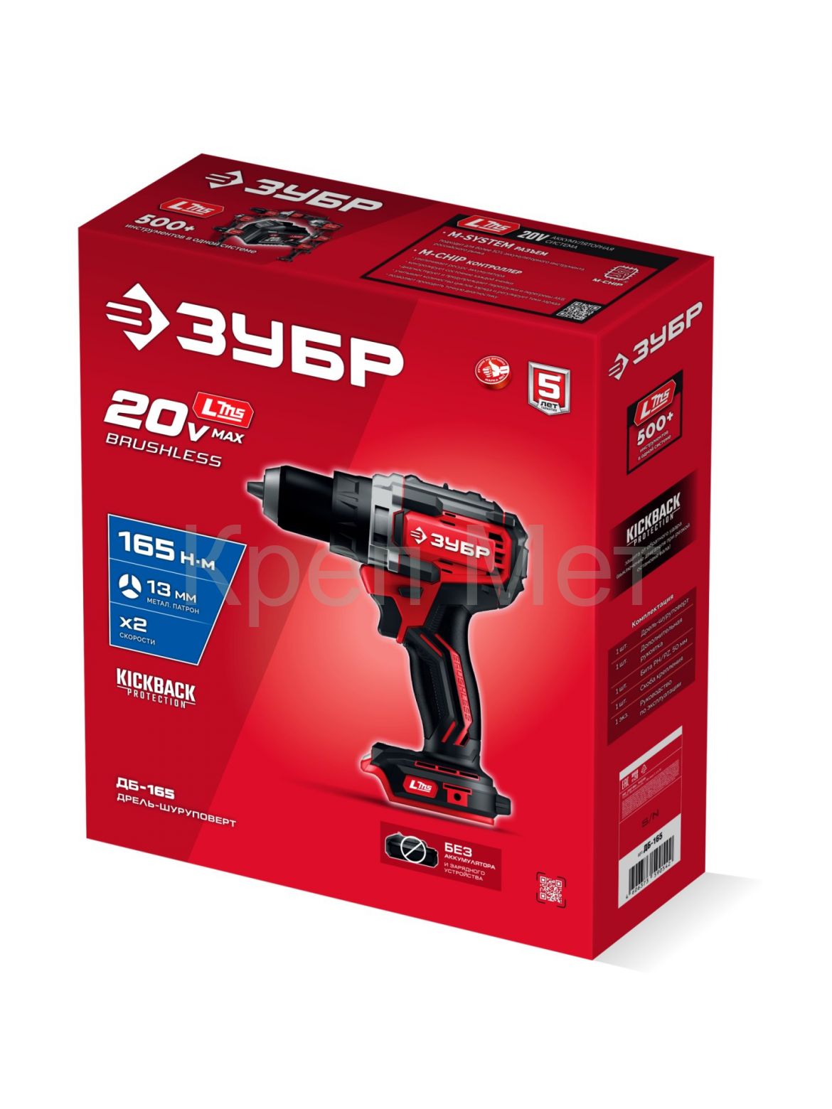 - ЗУБР 20 В, 165 Н·м, без АКБ (LMS), бесщеточная дрель-шуруповерт (ДБ-165)
