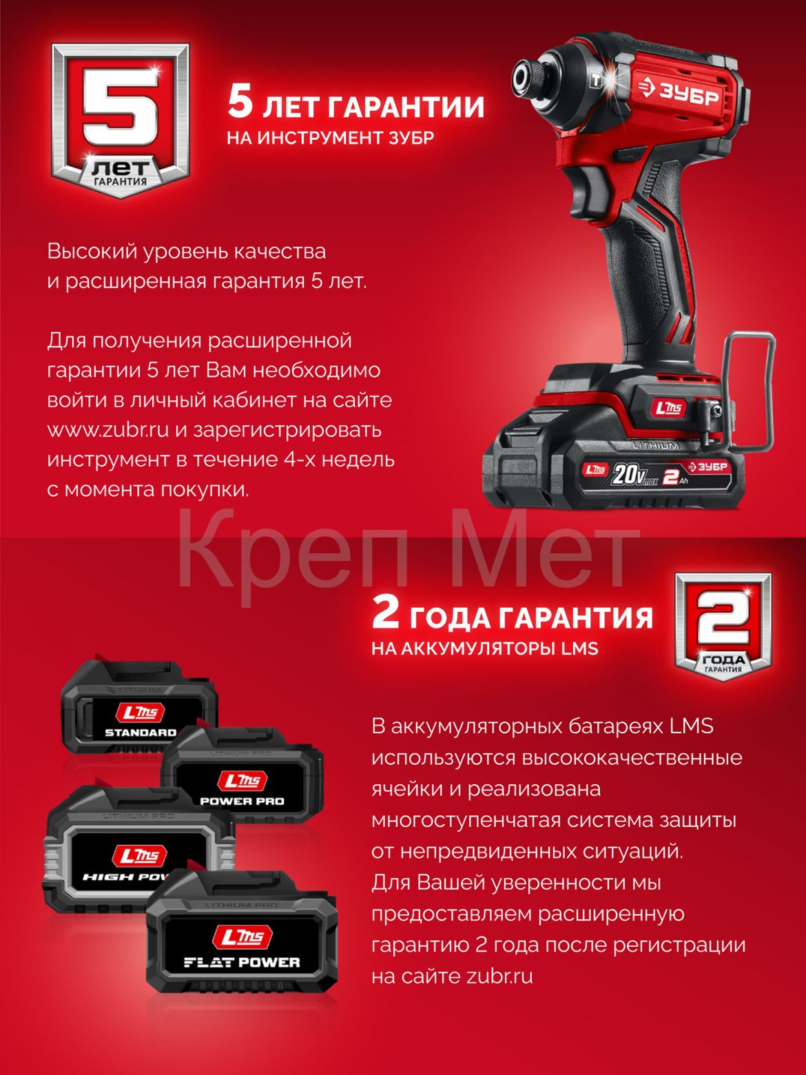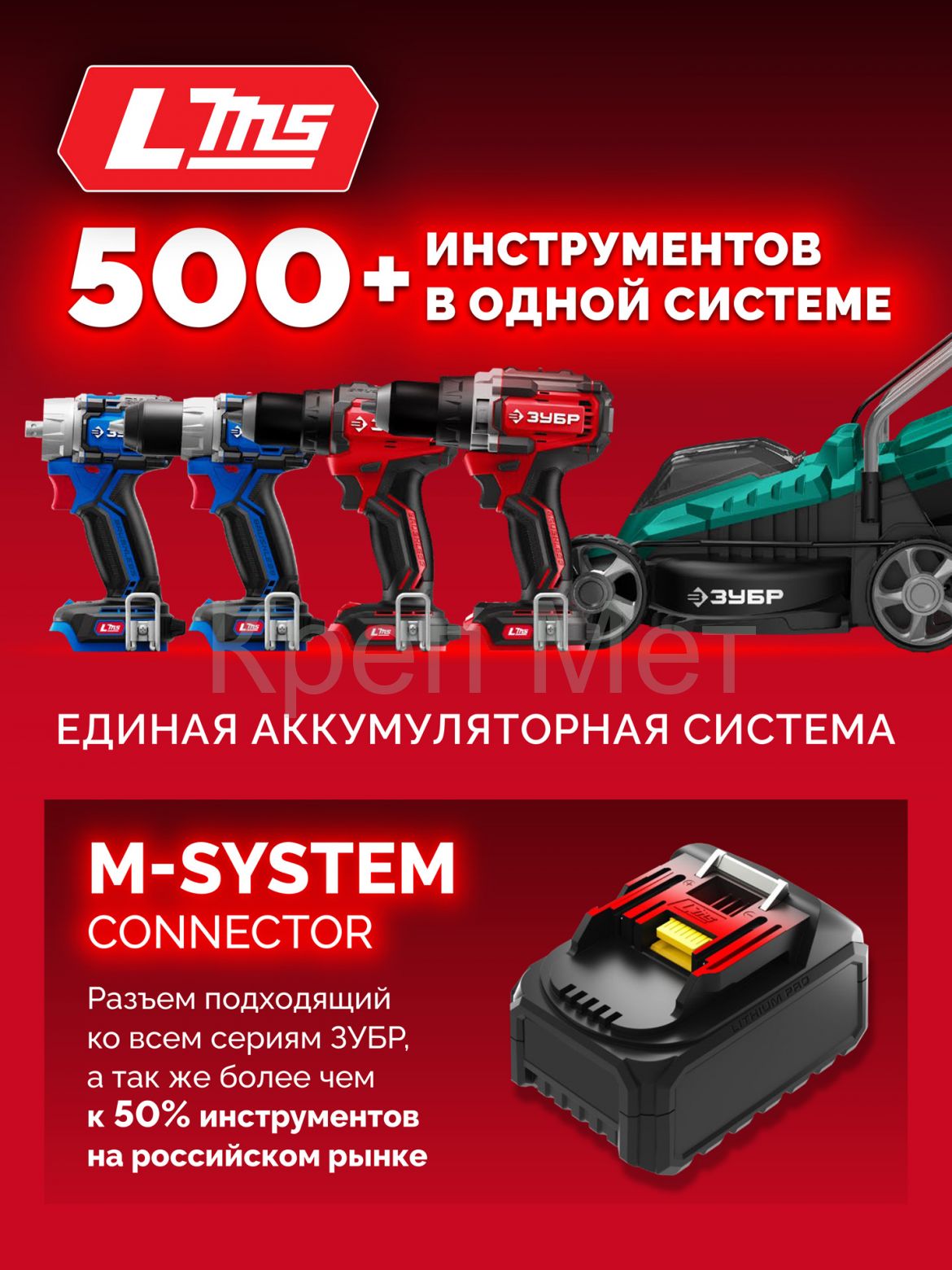 Бесщеточная дрель-шуруповерт ЗУБР системы LMS с максимальным крутящим моментом 165 Нм предназначена для работы с самым крупным крепежом (саморезы до 12 мм диаметром) и сверления отверстий до 40 мм в дереве. Встроенная защита от обратного удара предотвращает повреждение кисти при резкой блокировке вала