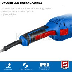 - Надежный хват благодаря основной и дополнительной рукояткам с мягкими накладками