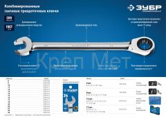 - ЗУБР 24 мм, комбинированный трещоточный гаечный ключ, Профессионал (27074-24)