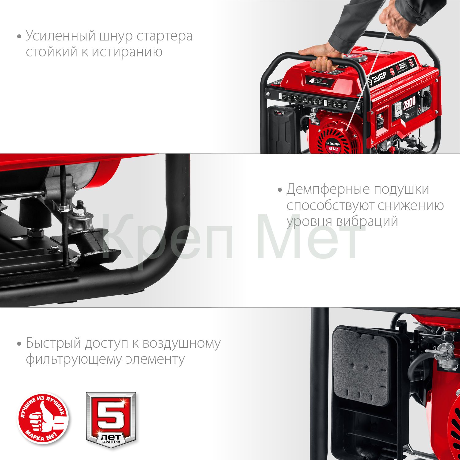 ЗУБР 2800 Вт, бензиновый генератор с электростартером (СБ-2800Е)