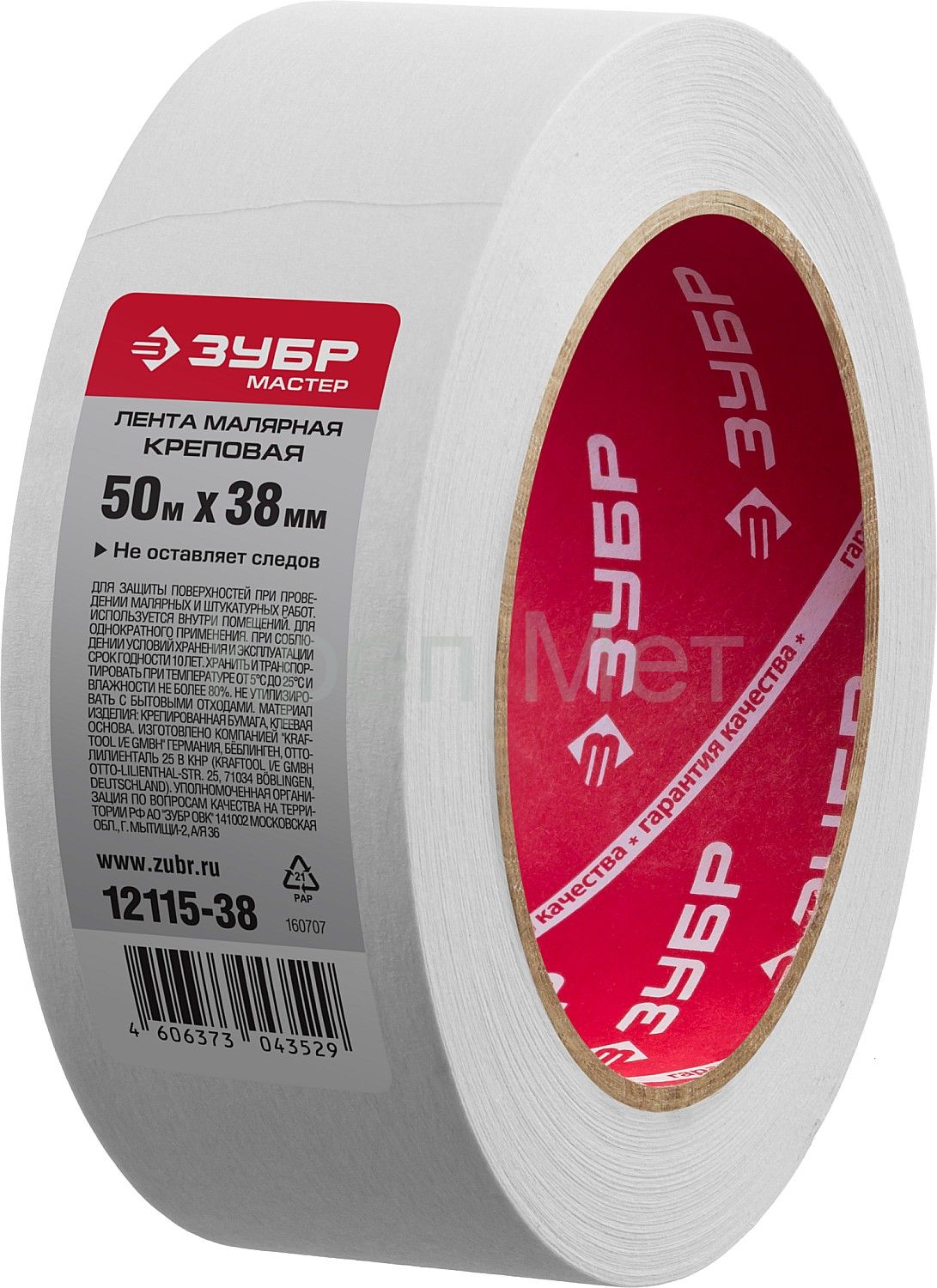 - ЗУБР 38 мм х 50 м, креповый, малярный скотч, МАСТЕР (12115-38)