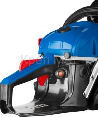Идеальный вариант для пиления досок, бруса, стволов различных пород дерева на дачном участке. В отличие от электрической, бензиновая пила оснащена более мощным двигателем, безопасна в отношении поражения электрическим током, может работать в любую погоду и в любом месте. Функции легкого запуска, автоматической смазки цепи и эффективная антивибрационная защита делают пилу легкой в обращении и комфортной в работе. Двойной тормоз цепи, приводимый в действие при откидывании защитного щитка или при отпускании клавиши блокировки на рукоятке, а также встроенный цепеуловитель и металлический упор делают пилу безопасной в применении. Большая удельная мощность, высокое качество применяемых материалов и изготовления, обеспечивающие увеличенный ресурс, делают бензиновую пилу ЗУБР Вашим лучшим помощником