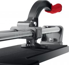 - Для работы с керамогранитом и керамической плиткой повышенной толщины плиткорез оснащен ручкой, направляющими и литой платформой.