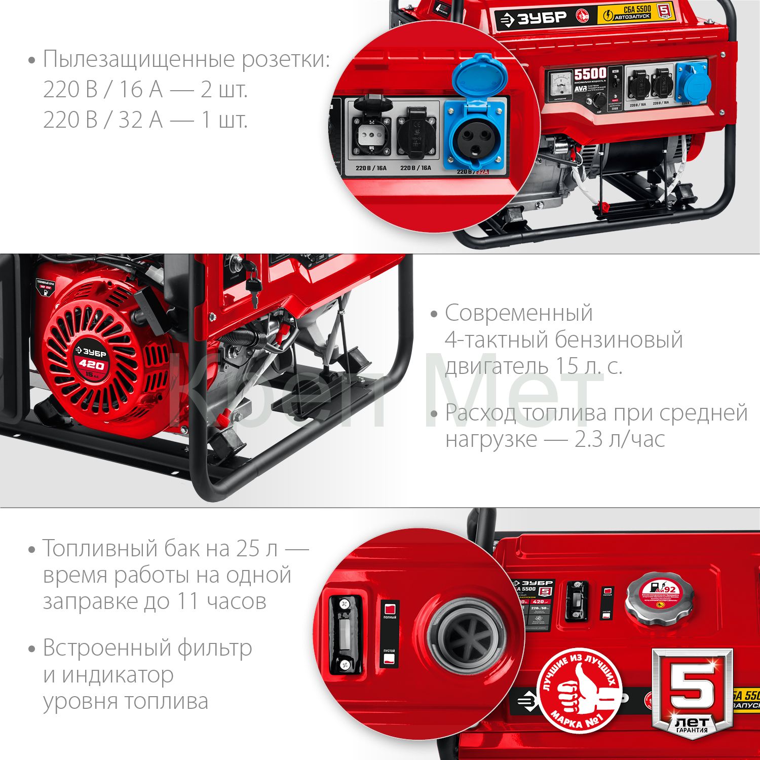 ЗУБР 5500 Вт, бензиновый генератор с автозапуском (СБА-5500)