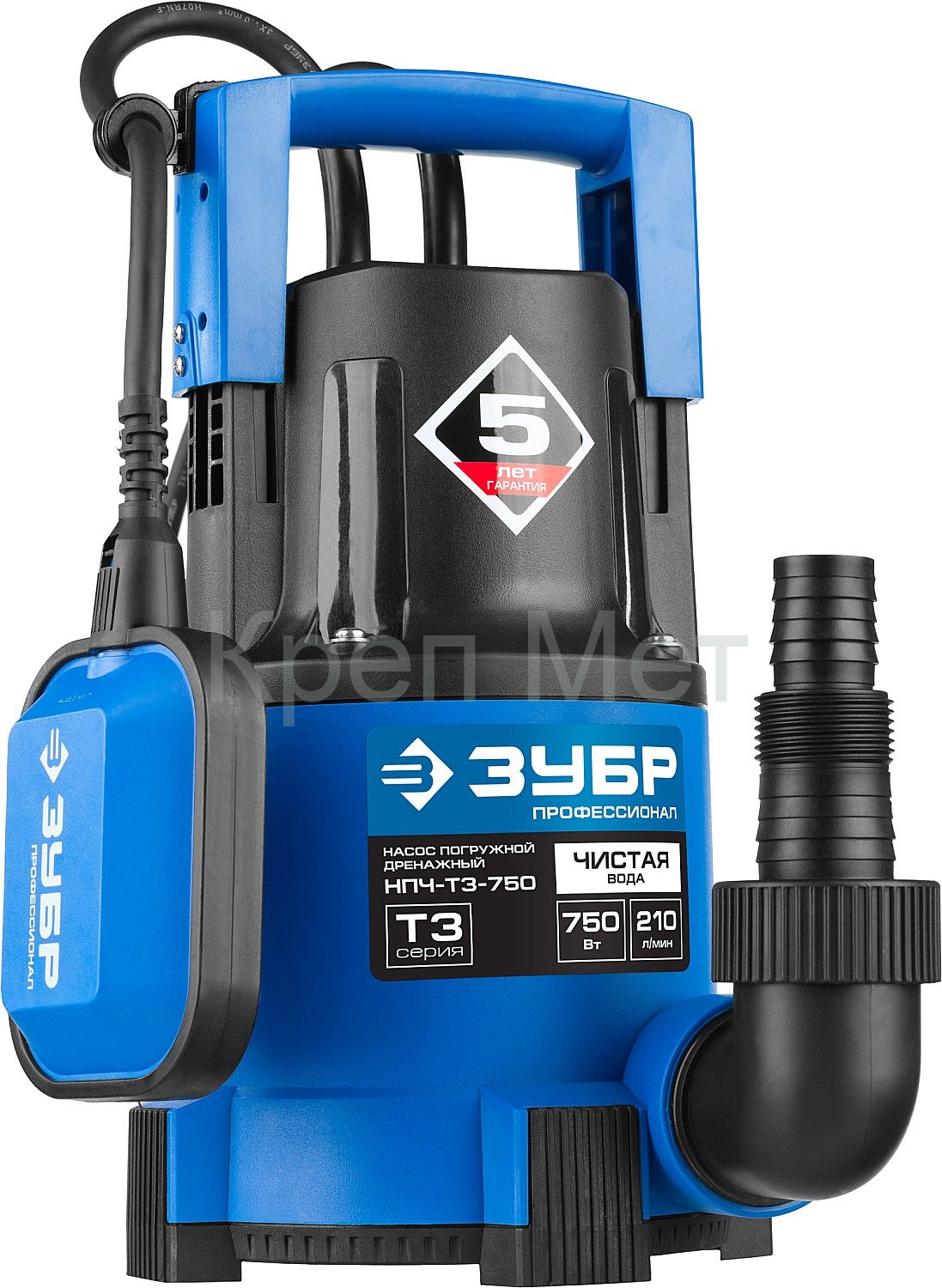 - ЗУБР 750 Вт, дренажный насос с минимальным уровнем откачки, Профессионал (НПЧ-Т3-750)