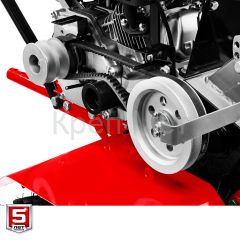 - Кронштейн для крепления навесного оборудования (диаметр 30 мм) и шкив отбора мощности позволяют использовать широкую гамму навесного оборудования: снегоуборщик, щетку, роторную косилку