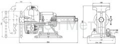 - Поворотное основание позволяет перемещать корпус тисков в горизонтальной плоскости на угол от 0 до 360 градусов
