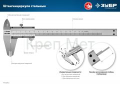 - ЗУБР ШЦ-1-250, 250 мм, стальной штангенциркуль, Профессионал (34514-250)