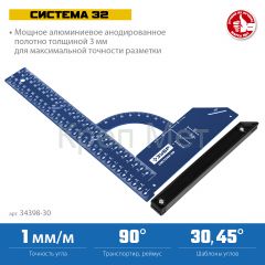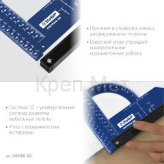 ЗУБР Система-32, разметочный мебельный угольник, Профессионал (34398-30)